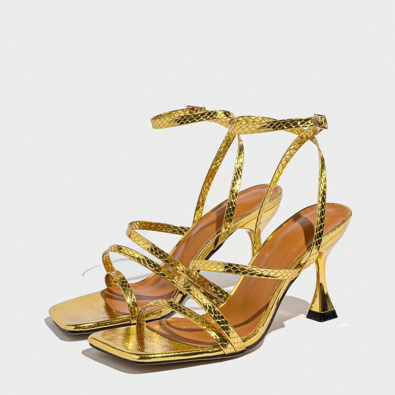 Главная страница > Женские босоножки на высоком каблуке, трансграничная внешняя торговля, элегантные тонкие ремешки, великолепный металлический стиль, очаровательные уникальные золотые женские туфли ручной работы