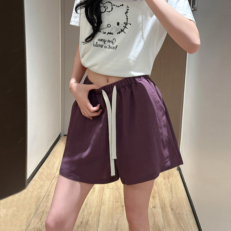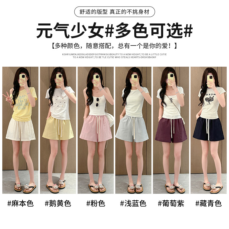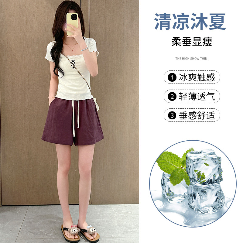 Главная страница > Женские спортивные шорты из ледяного шелка, лето 2025, тонкие, высокая талия, свободные, утягивающие, миниатюрные, льняные, до колена
