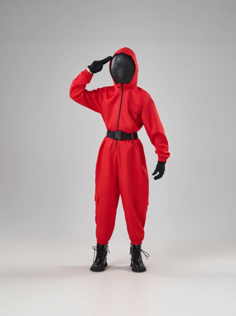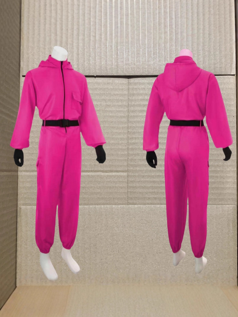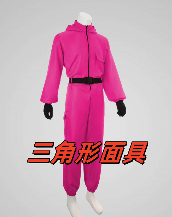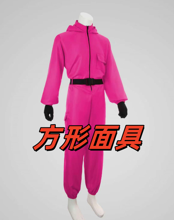 Розово-красная одежда, перчатки, пояс, квадратная маска