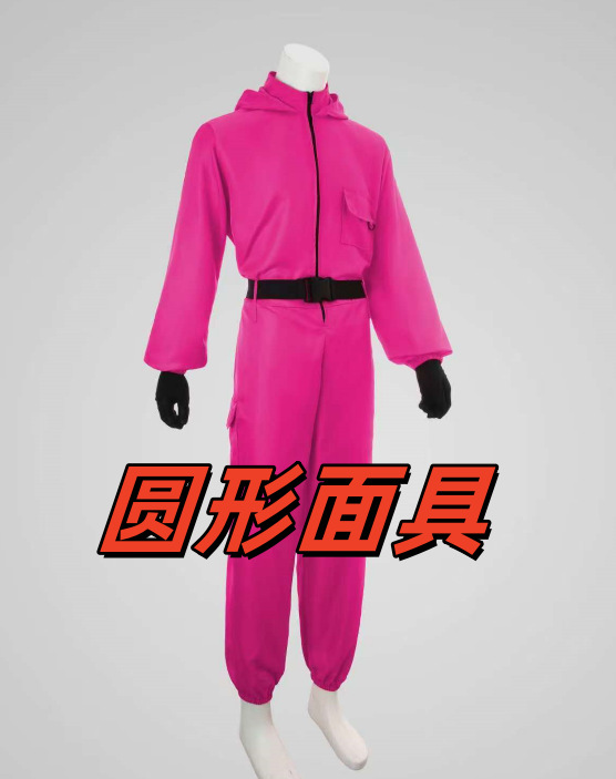 Розово-красная одежда, перчатки, пояс, круглая маска