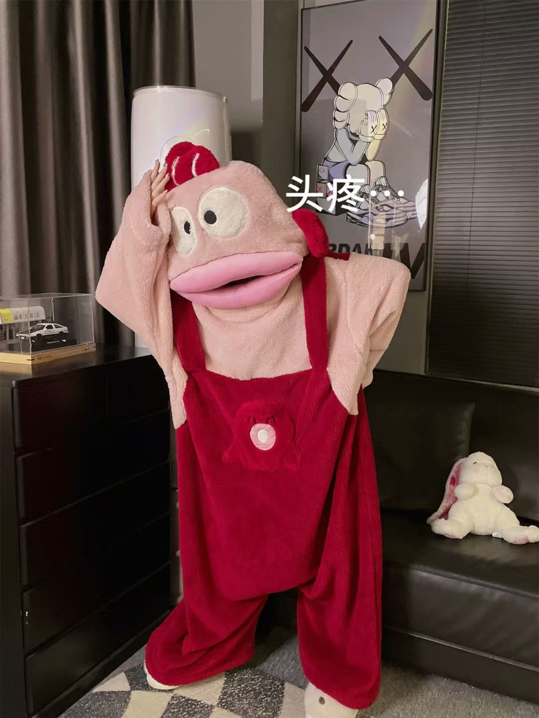 Главная страница > Цельная пижама Hanton Ugly Fish, женская коралловая бархатная утолщенная теплая пижама с рыбьим ртом, зимняя пижама с рисунком «странная пара»