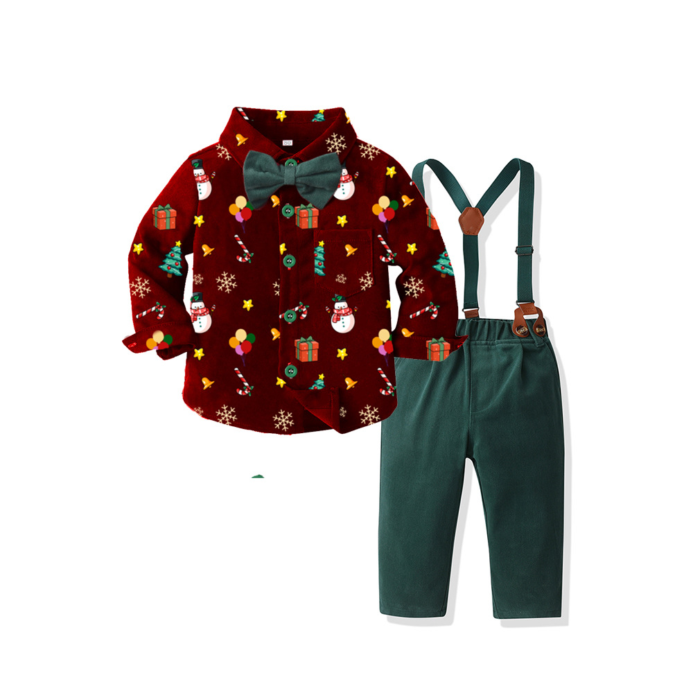 Главная страница > 欧美儿童圣诞节服装新男童格子长袖翻领棉开衫背带裤节日套装潮范