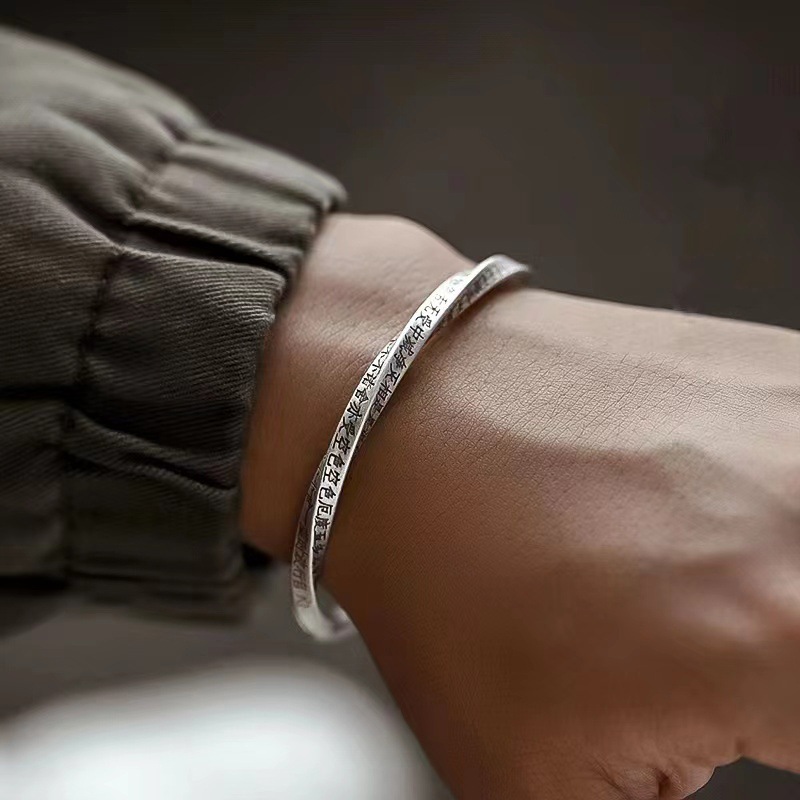 Главная страница > Ретро тайский серебряный сердечный браслет мужской и женский простой модный древний стиль