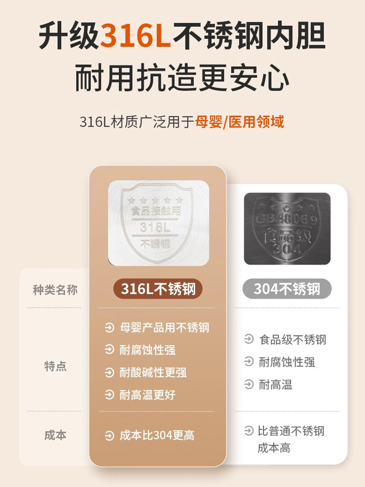 Бежевая модель объемом 2,5 л [нержавеющая сталь 304] Модель для кипячения воды
