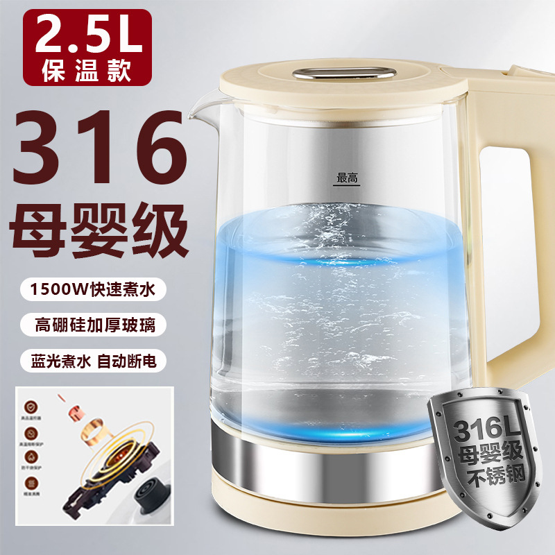 Электрический чайник для домашнего использования, чайник из нержавеющей стали 316, быстрый чайник, стеклянный чайник, изолированный чайник для здоровья.
