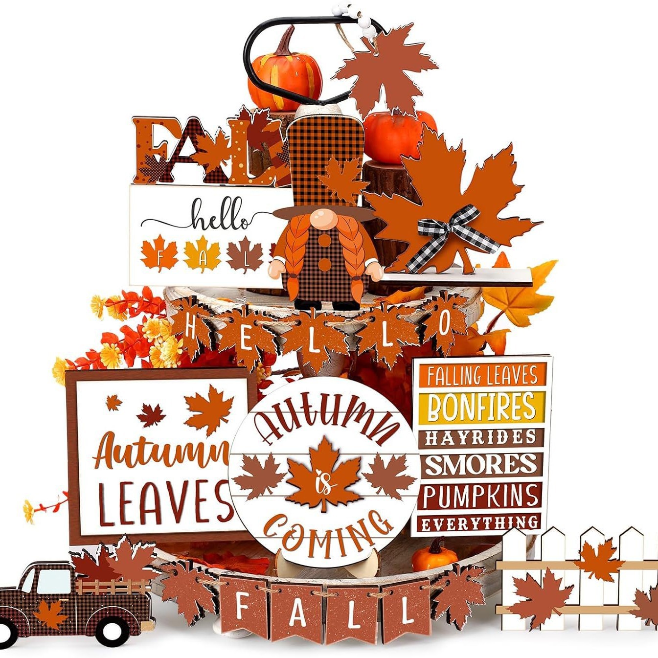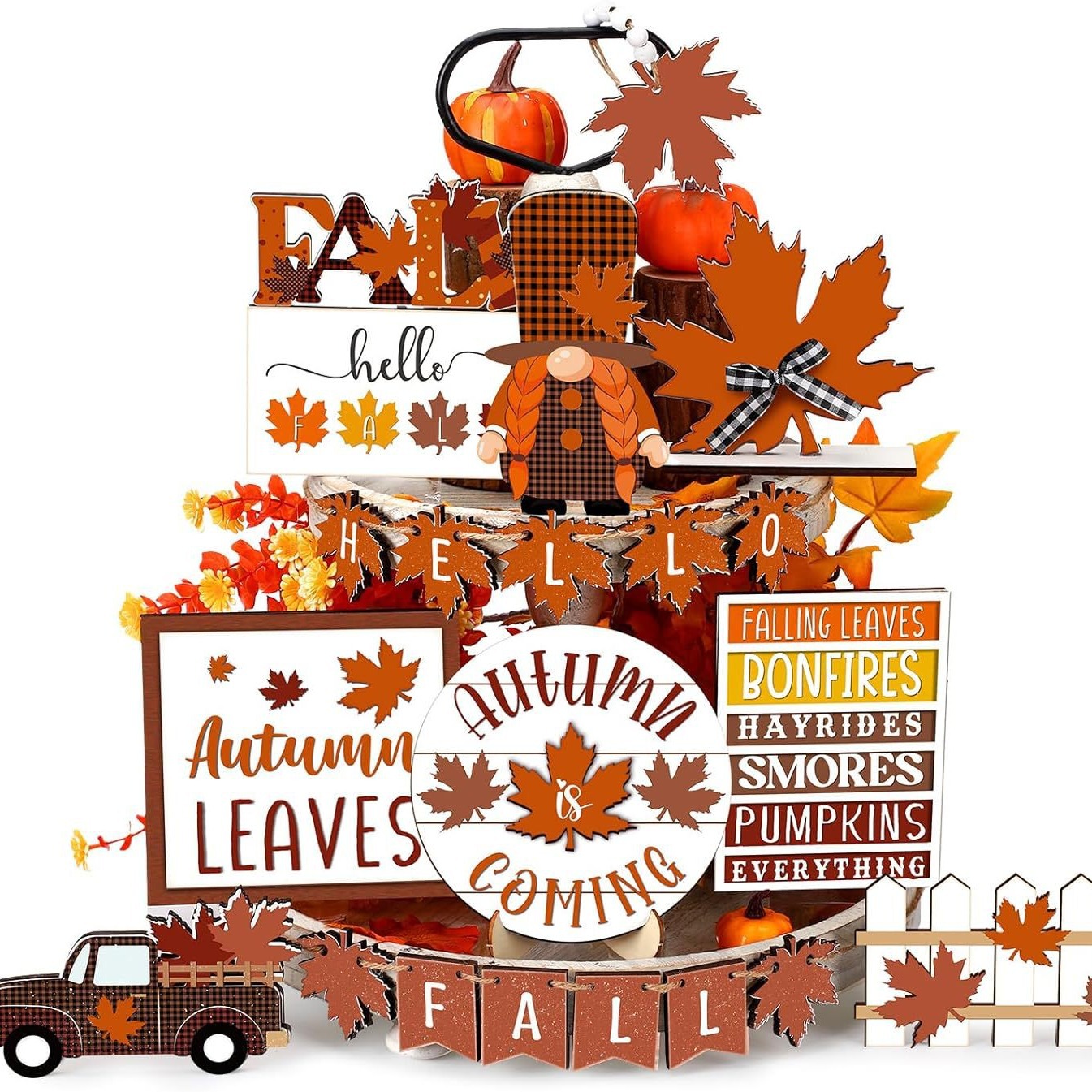 Главная страница > 21 шт., осеннее многослойное украшение подноса, кленовый лист, карлик, День Благодарения, фермерский дом, деревенский дом, обеденный стол, украшение для кухни