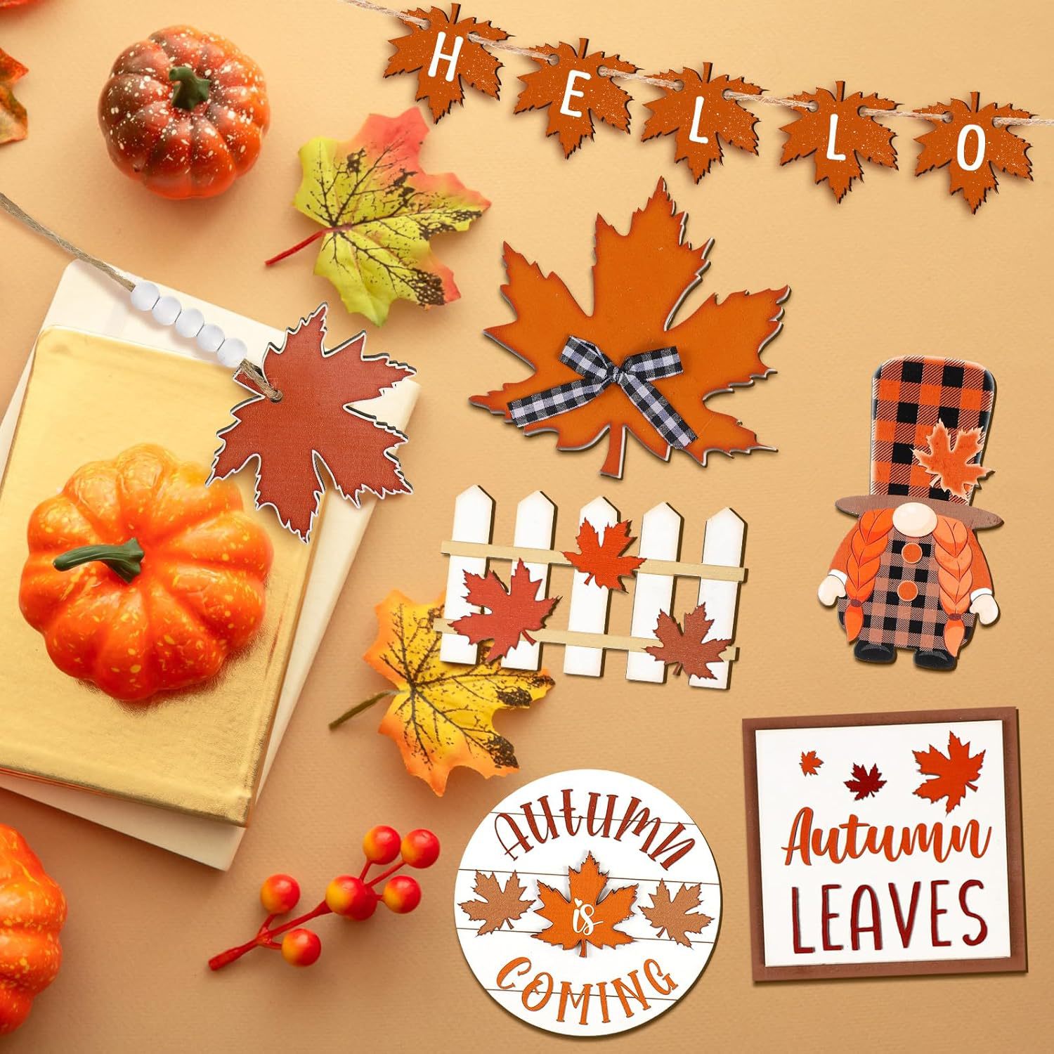 21 шт., осеннее многослойное украшение подноса, кленовый лист, карлик, День Благодарения, фермерский дом, деревенский дом, обеденный стол, украшение для кухни