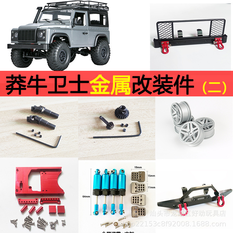 Запчасти для модификации и тюнинга Mangniu MN99S Land Rover D90: передний бампер, колесные диски, педали, фонарь на крыше, амортизатор, коробка передач, внедорожник.