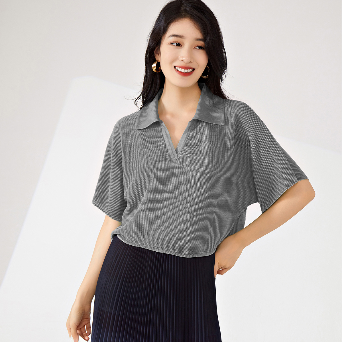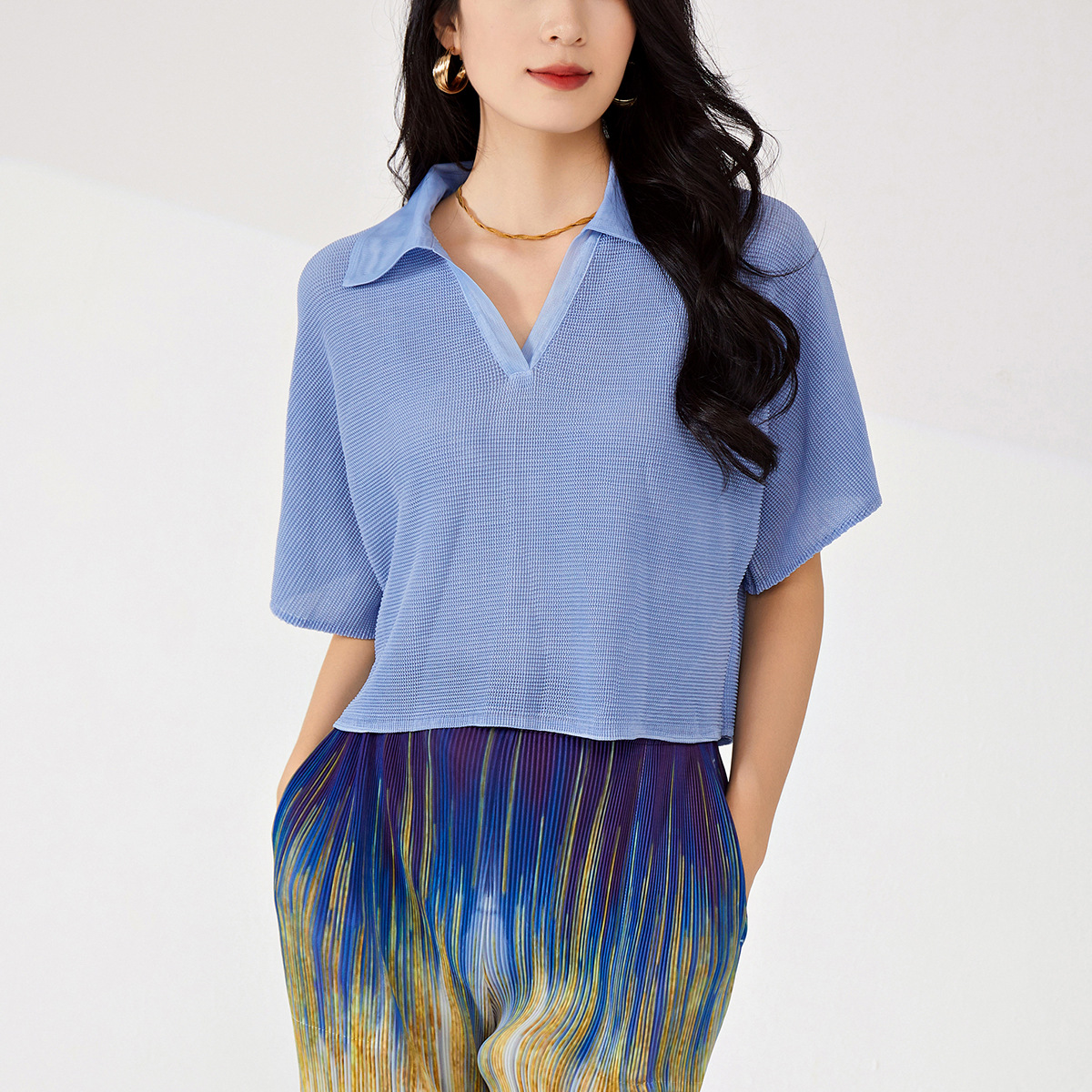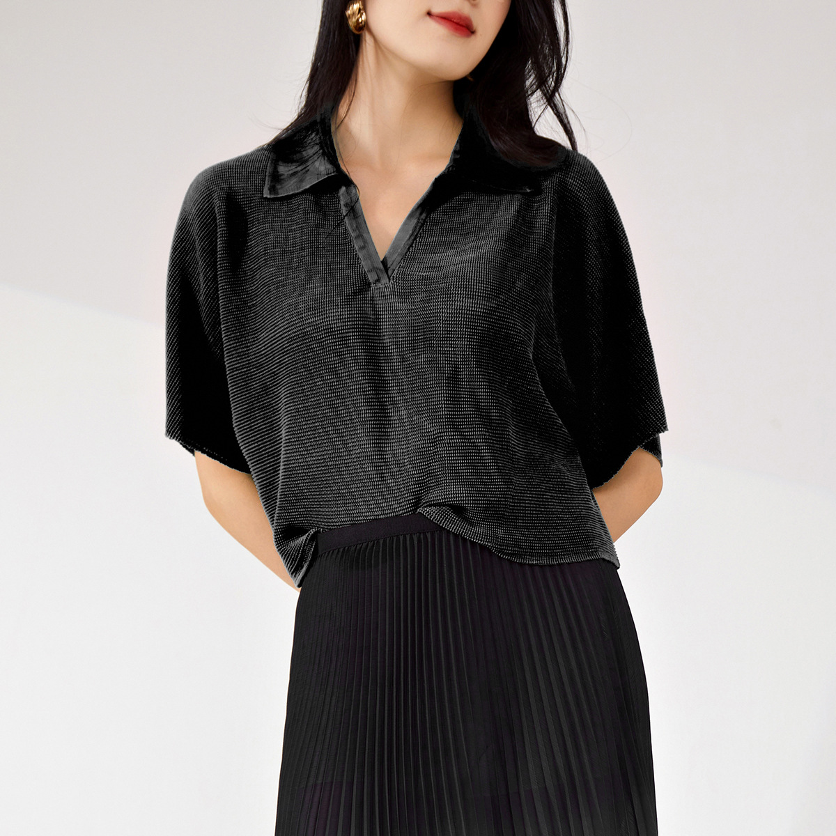 Главная страница > Одежда для женщин с короткими рукавами 1688 оптовая поставка высокая талия с коротким воротом маленький стильный повседневный дикий тройной дом футболка
