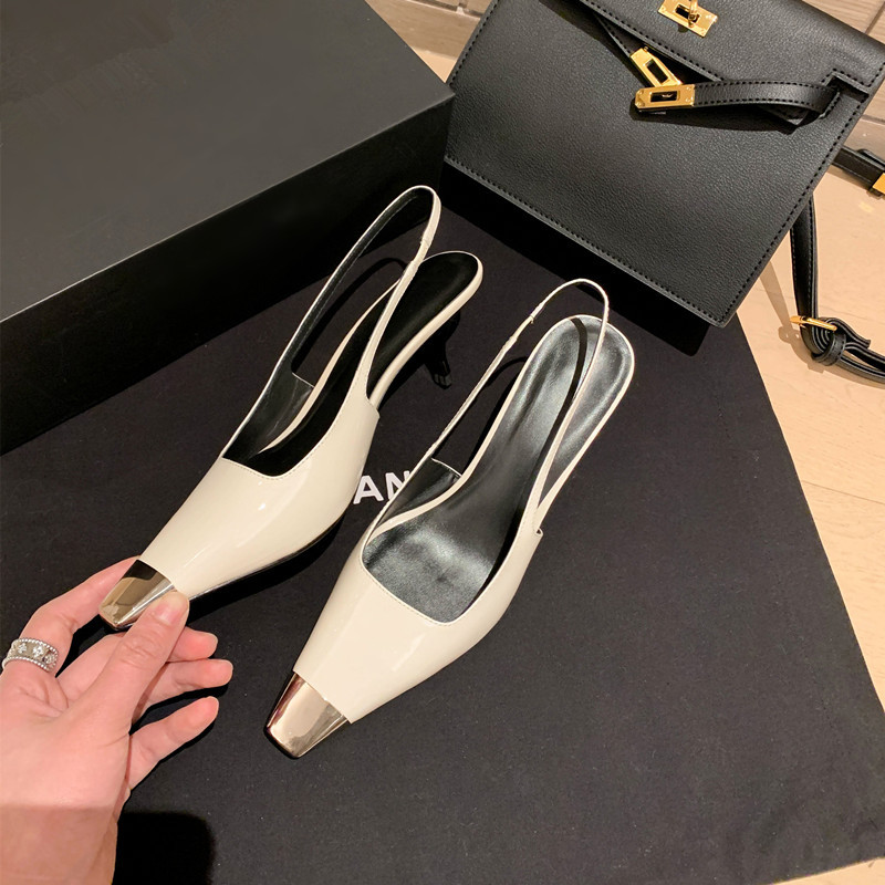 Главная страница > Богиня Жареная улица Металлическая голова Высокие каблуки 2023 Новые задние пустые сексуальные сандалии Баотоу с квадратной головкой и мелким ртом