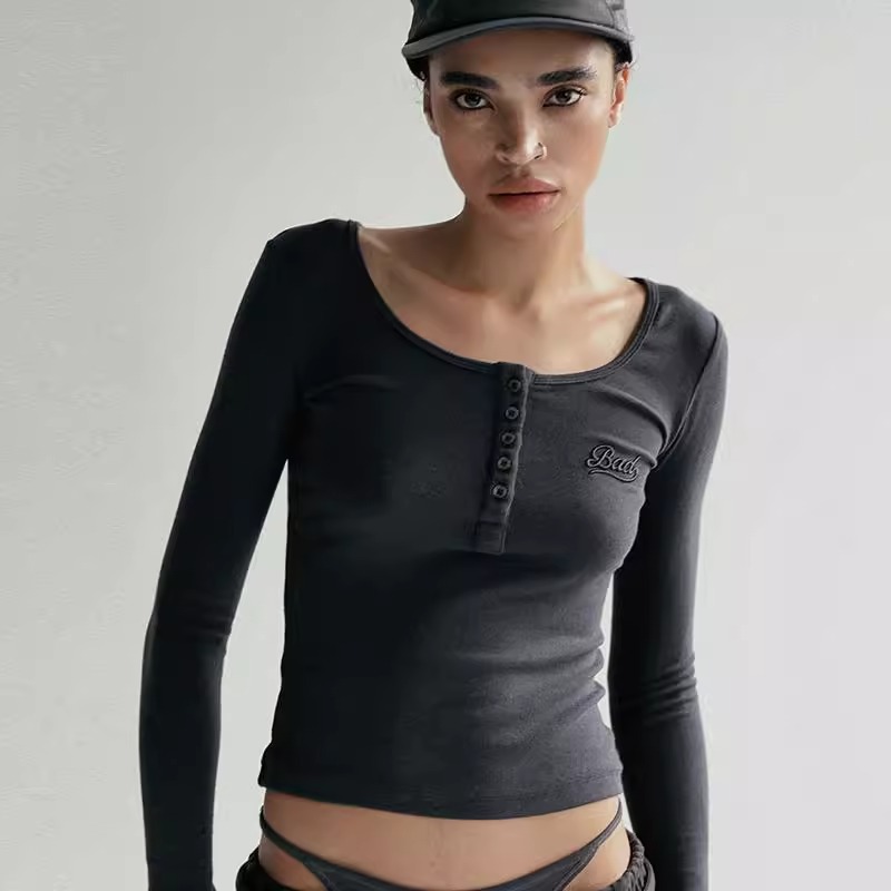 Главная страница > Корейская серия badblood bcac, американская сексуальная футболка с длинными рукавами, женская сексуальная нишевая рубашка с тонким низом, топ