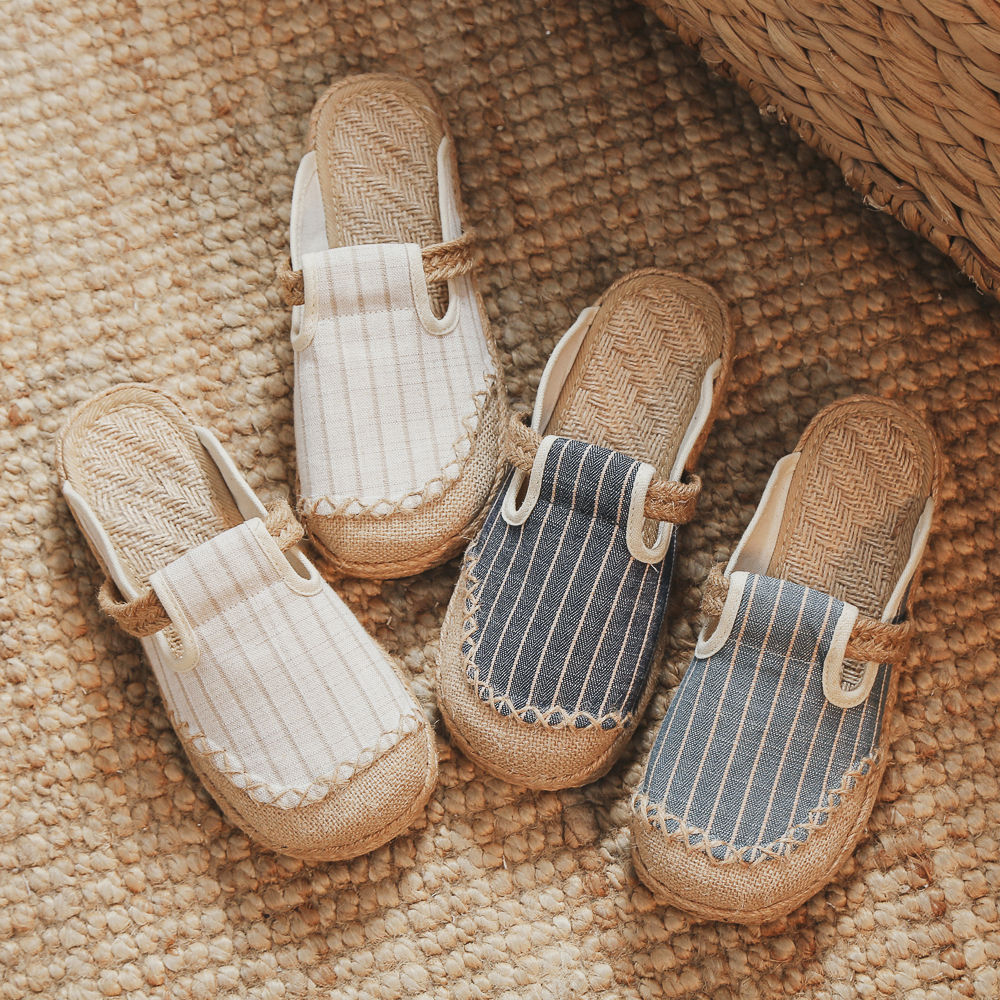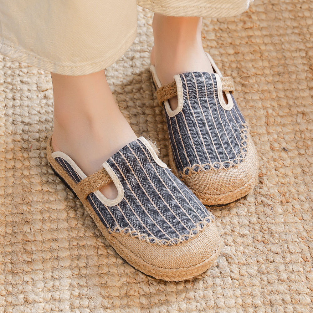 Главная страница > T22 повседневные полосатые льняные тапочки