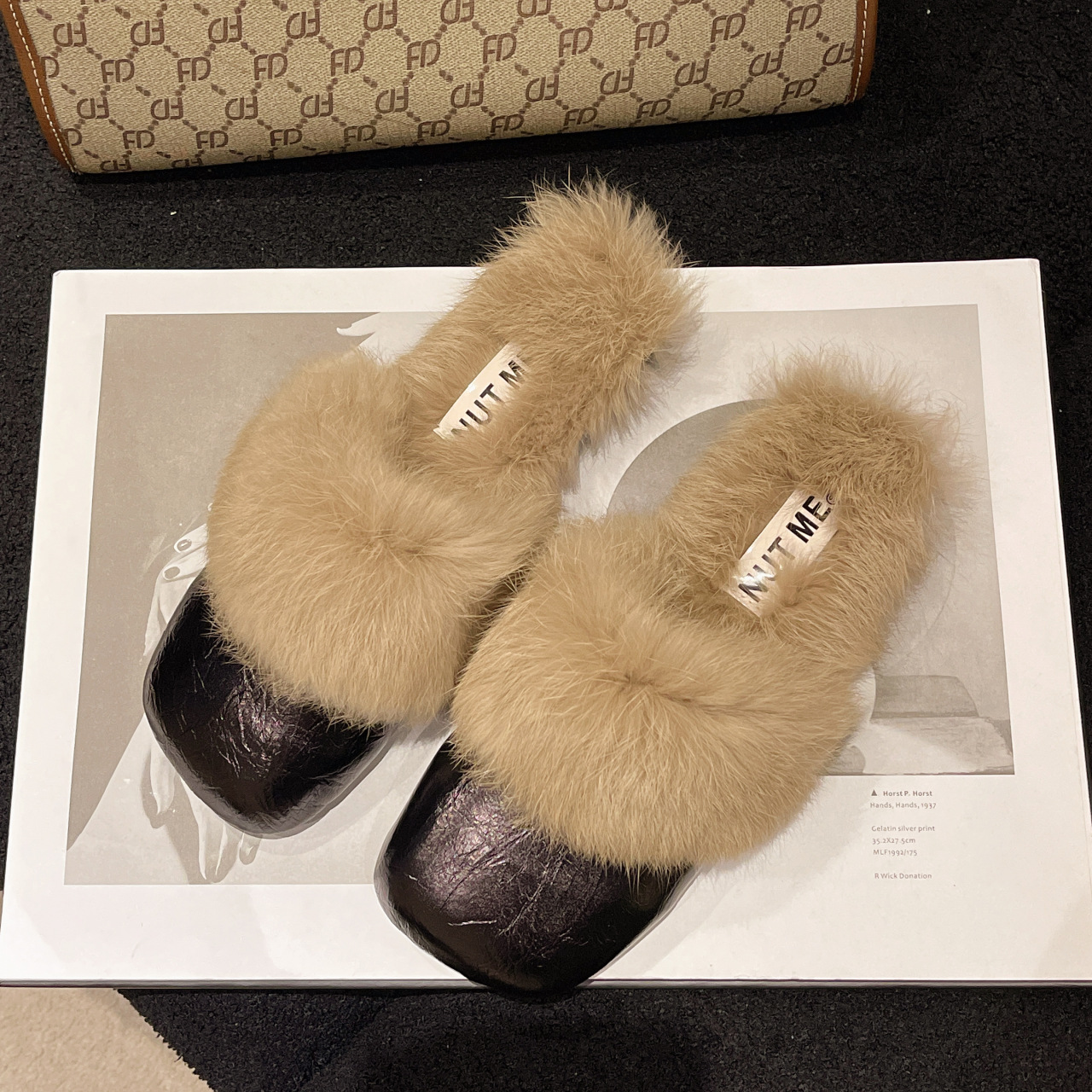 Главная страница > Повседневная тапочка педали женщина 2024 осень и зима сад голова волосатые тапочки женские модные женские туфли