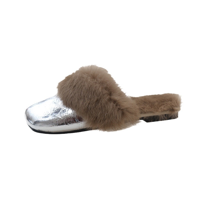 Повседневная тапочка педали женщина 2024 осень и зима сад голова волосатые тапочки женские модные женские туфли