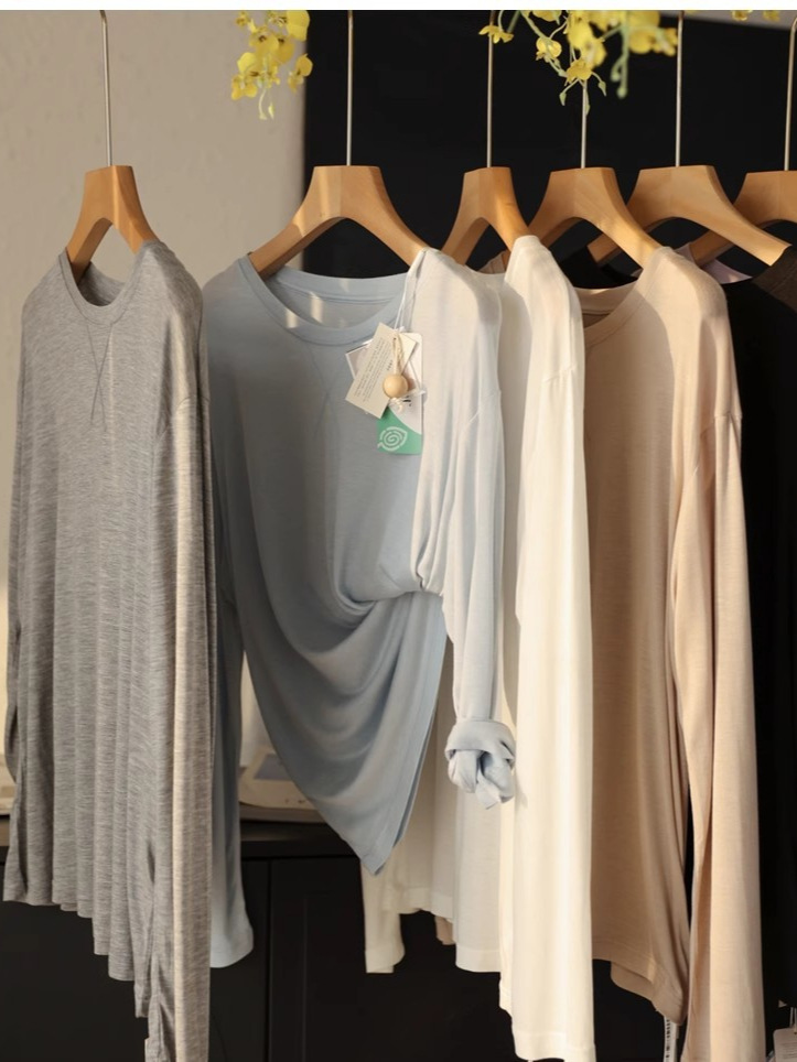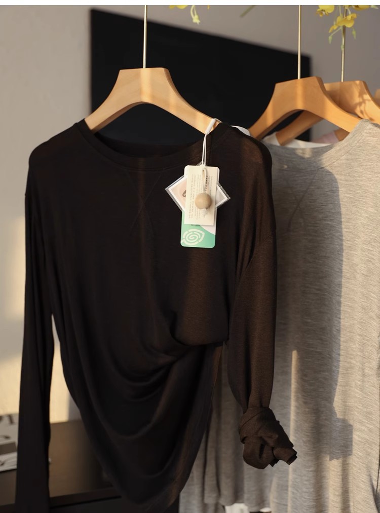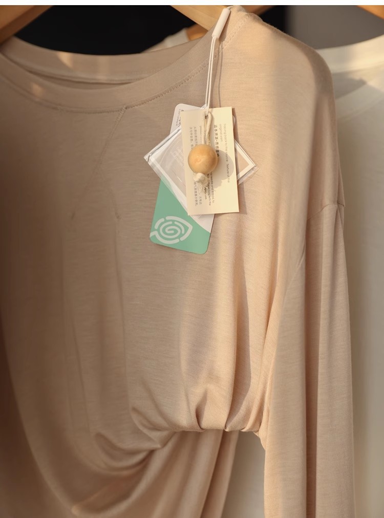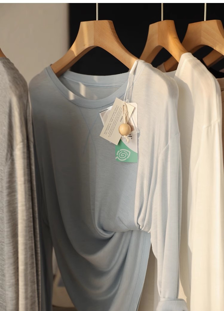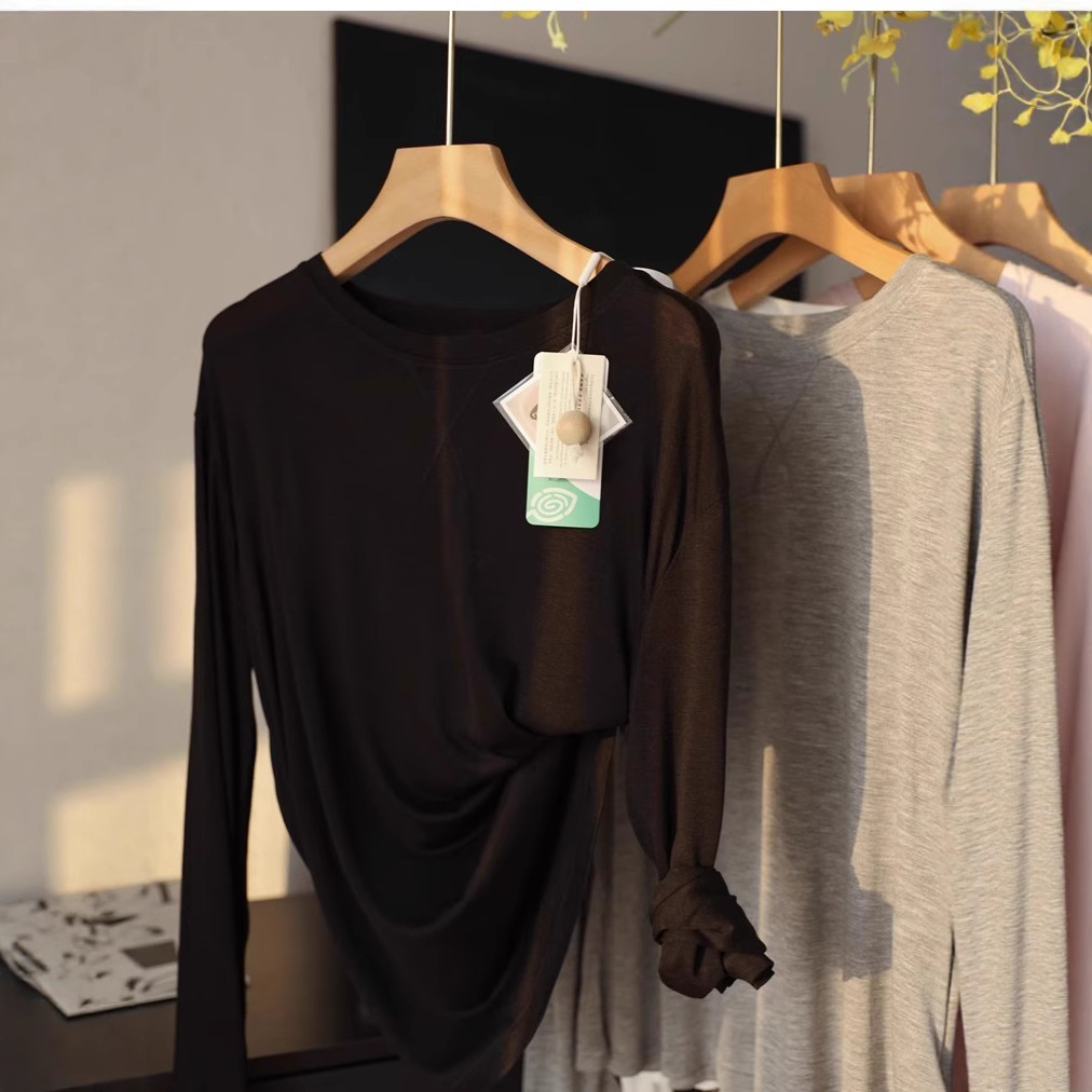 Главная страница > Отличная цена, ацетатная шерсть, лиоцелл, мягкая восковая эластичная футболка с круглым вырезом, тонкая свободная солнцезащитная блузка с длинными рукавами для женщин Xia Xin