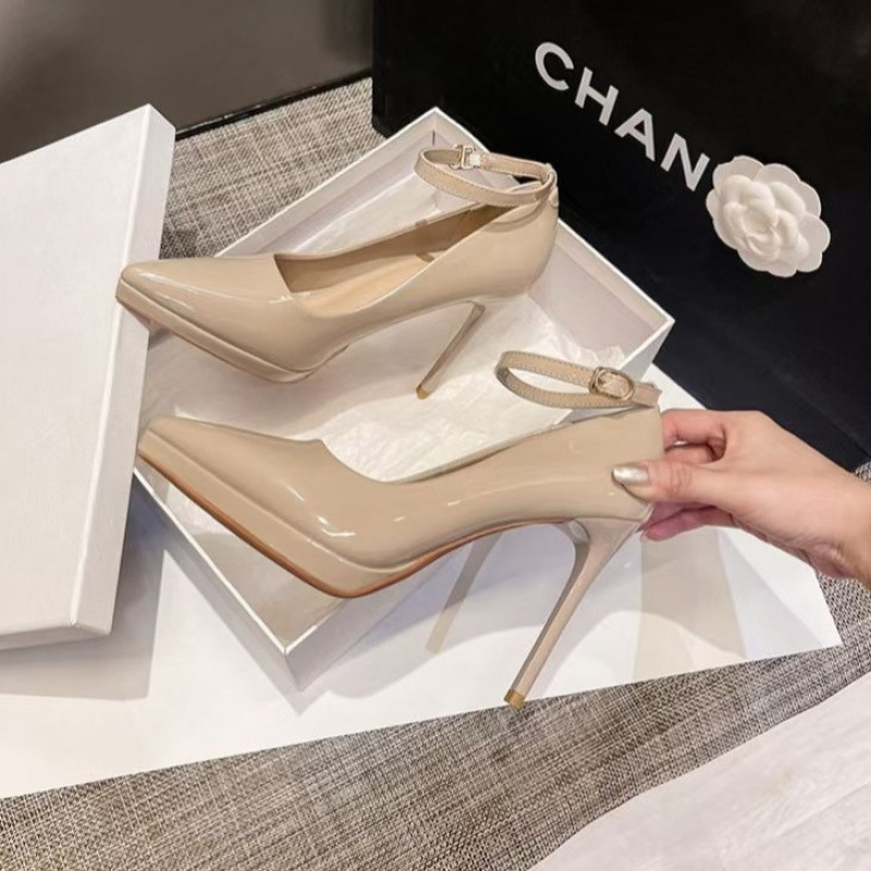 Главная страница > Элегантные новые женские туфли 2025 года, модные туфли большого размера с одной линией пряжки, водонепроницаемые туфли на платформе с острым носком, женские туфли на высоком каблуке на шпильке