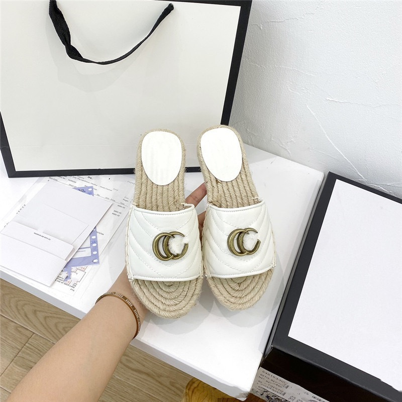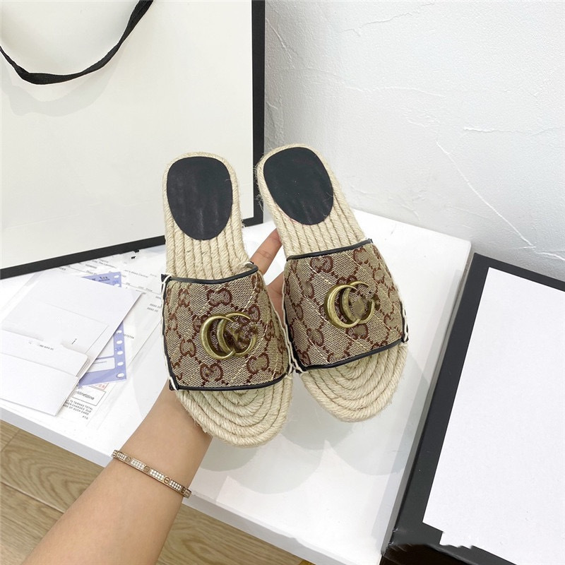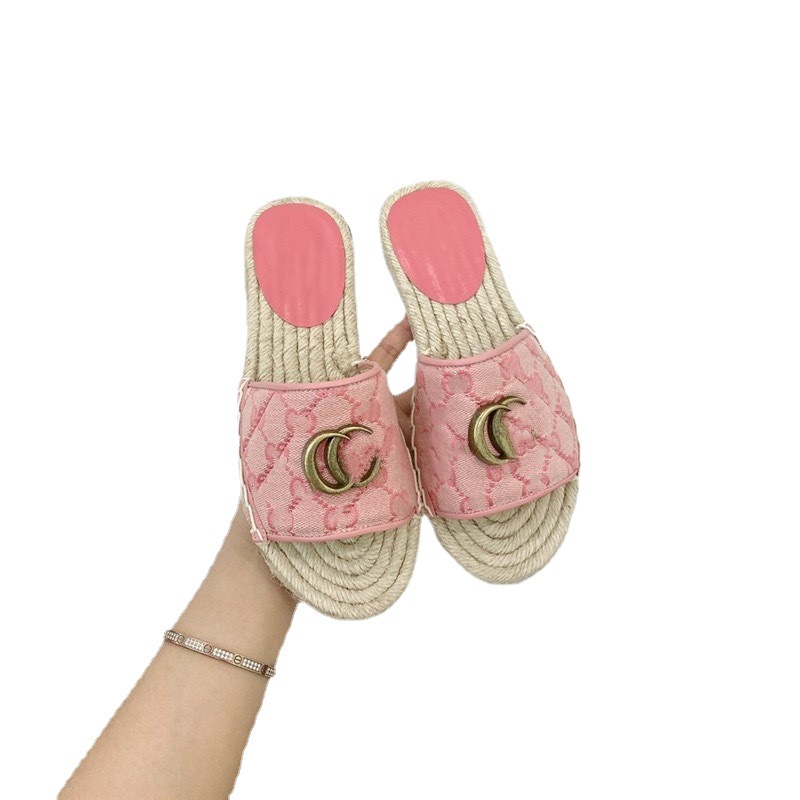 Семейные соломенные рыбацкие тапочки G, новые тканые пляжные туфли на толстой подошве с поясом одним словом, женские лоферы без шнуровки
