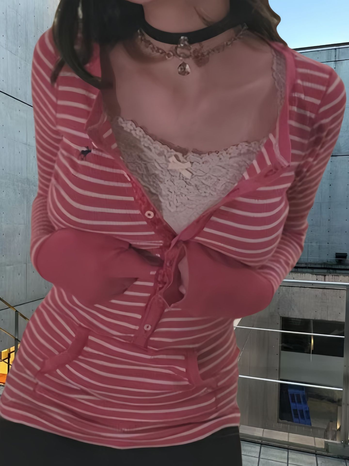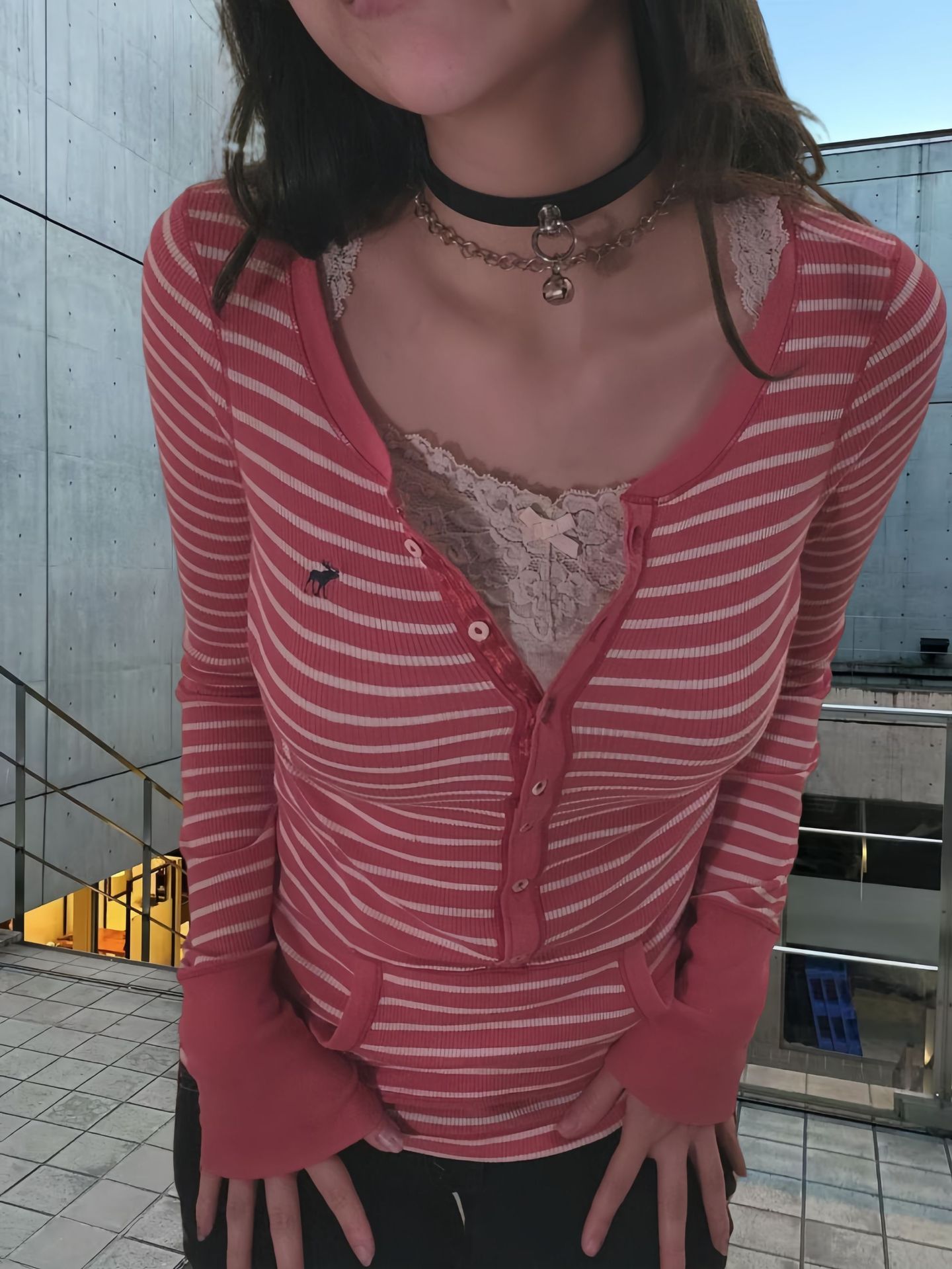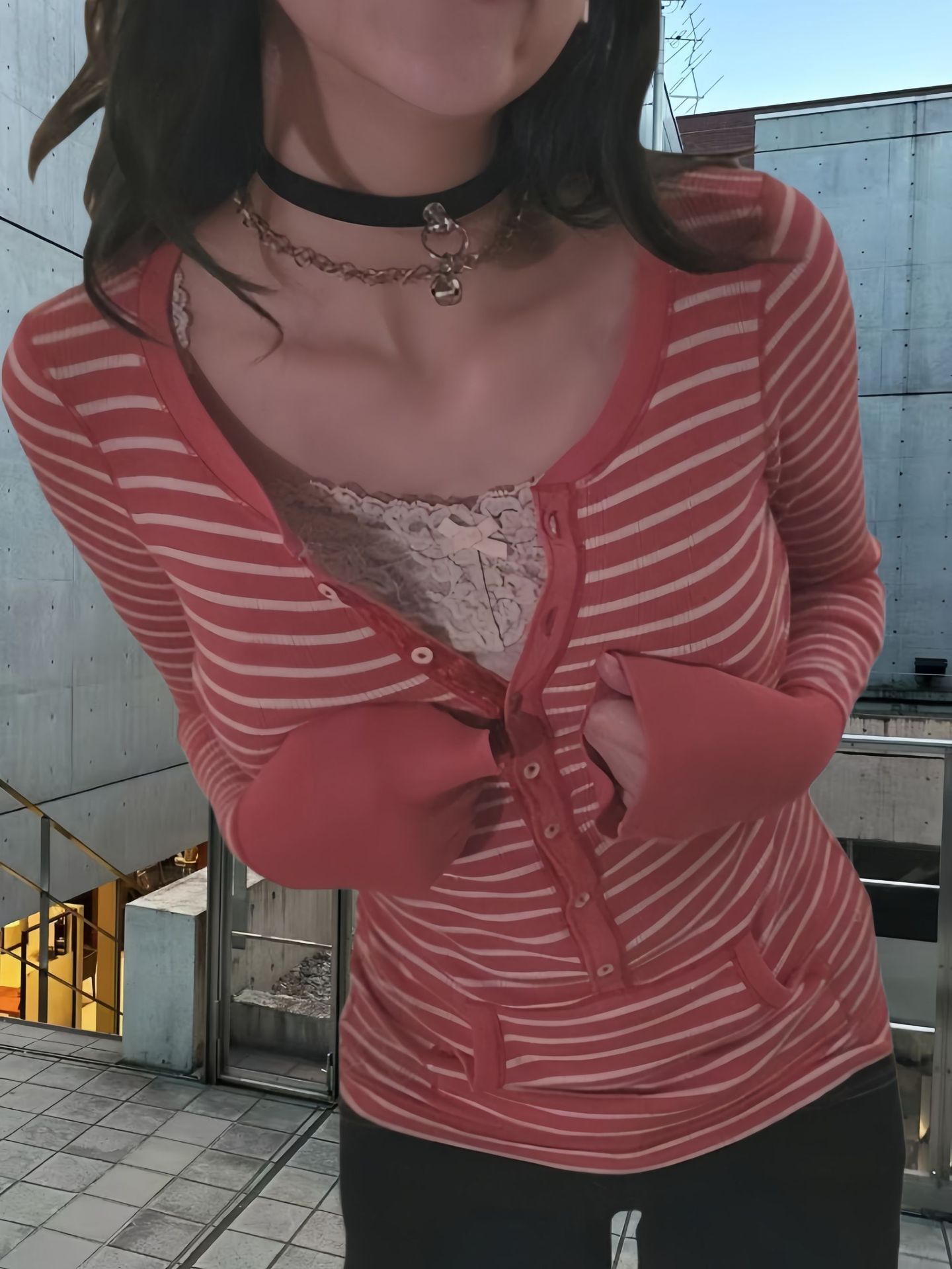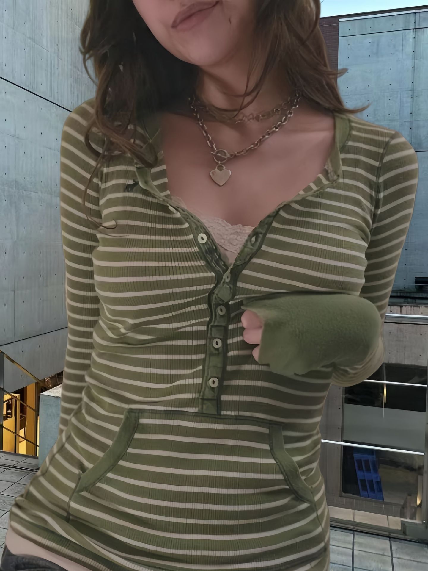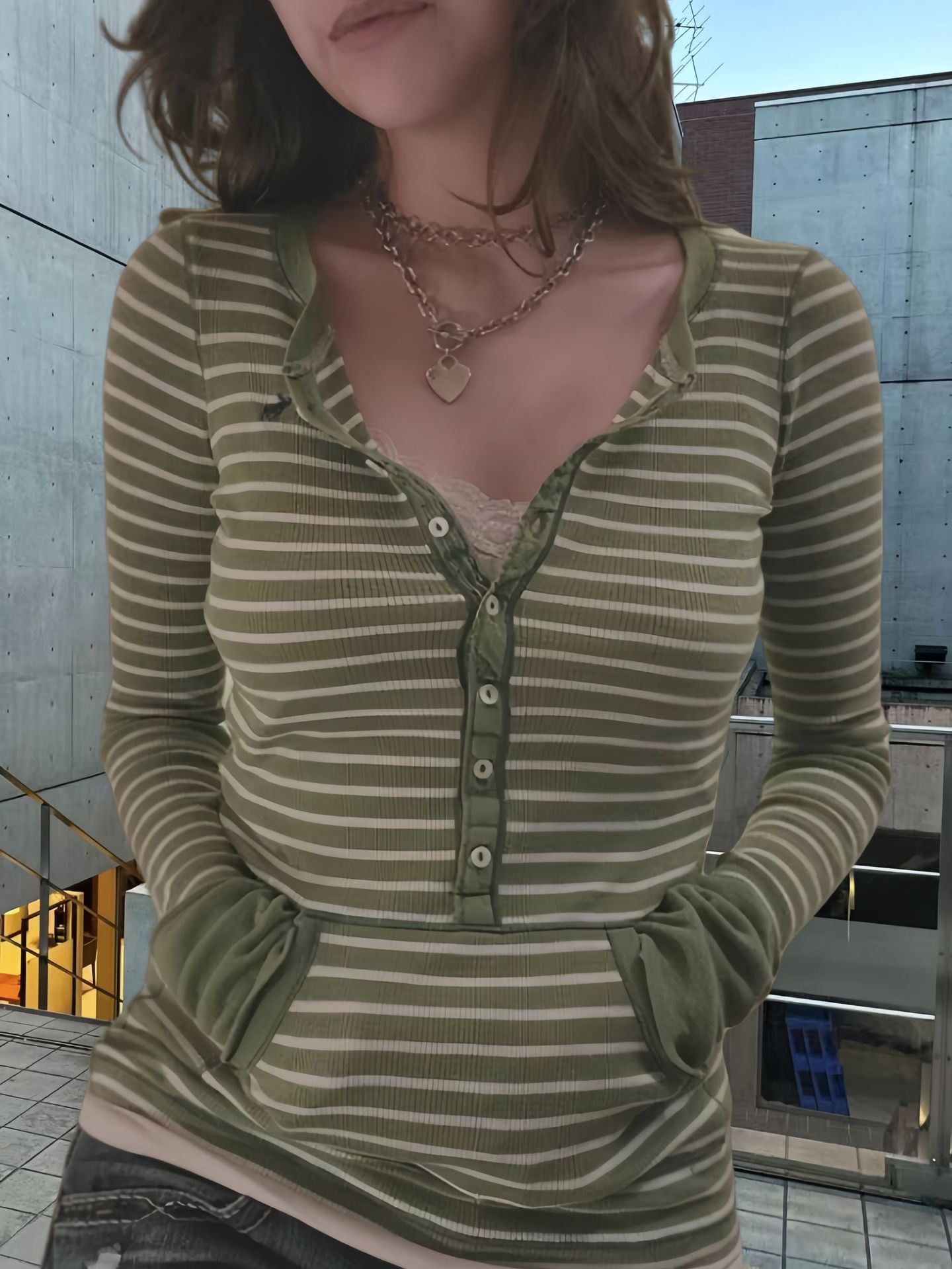 Главная страница > Европейская и американская ретро полосатая футболка с V-образным вырезом женская 2024 осень новая корейская версия