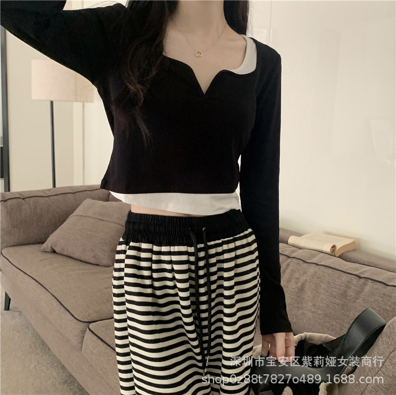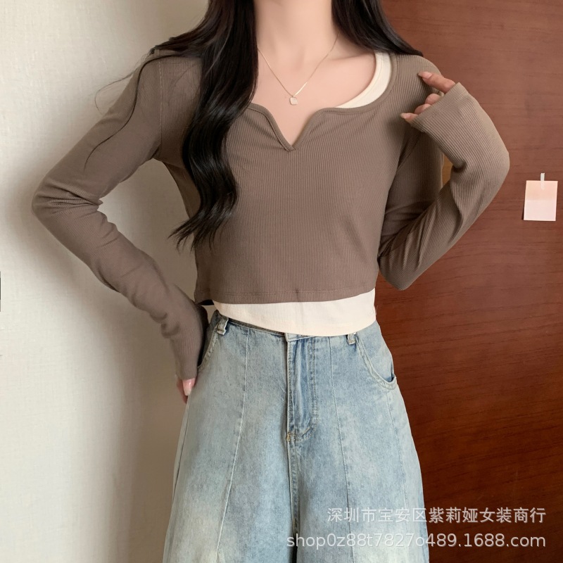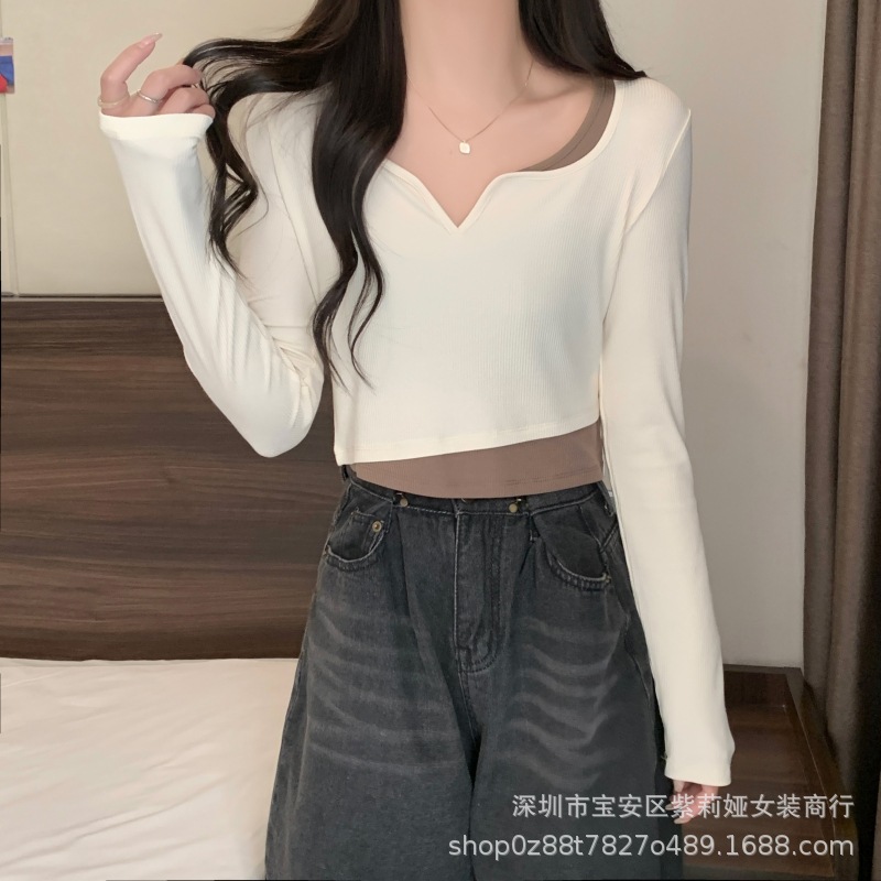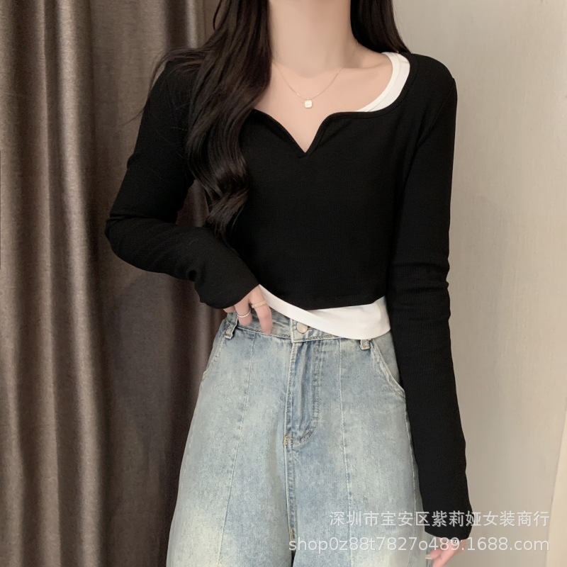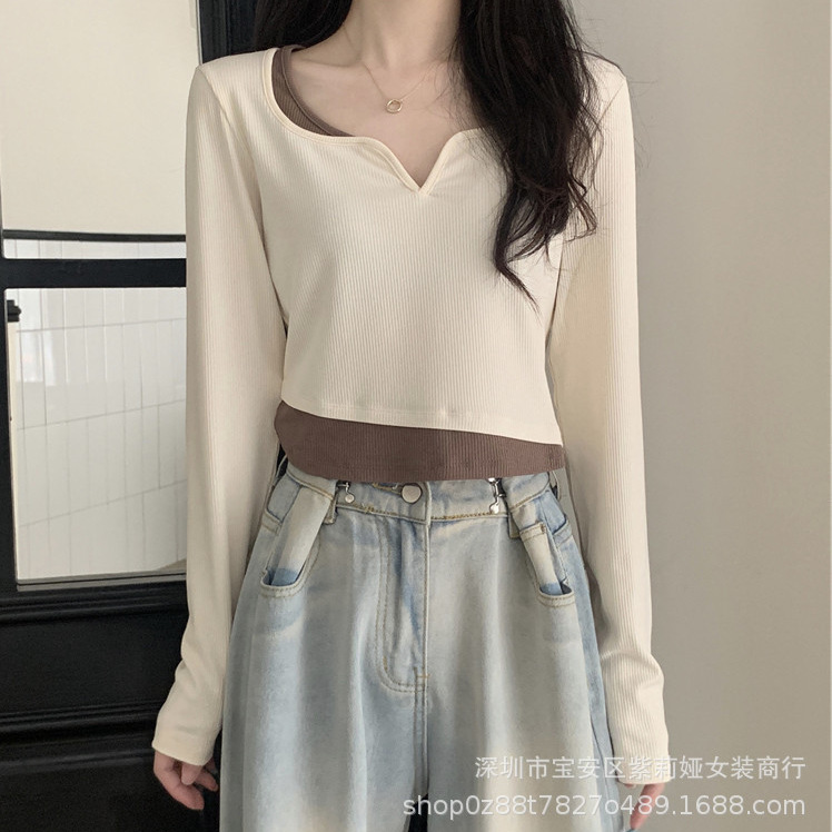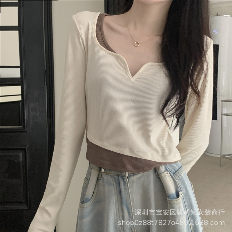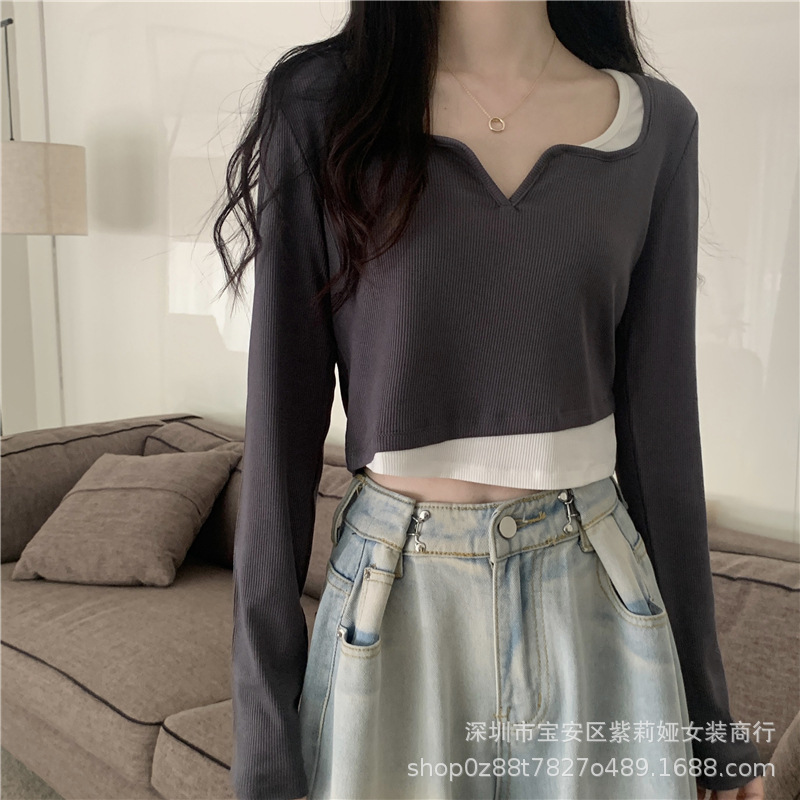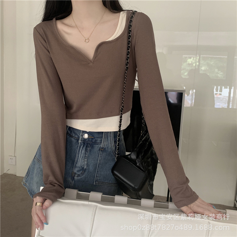 Главная страница > Футболка с длинными рукавами неправильной формы из двух предметов Design Sense, новинка 2022 года, маленький соленый Сладкий топ для ранней осени, женская одежда