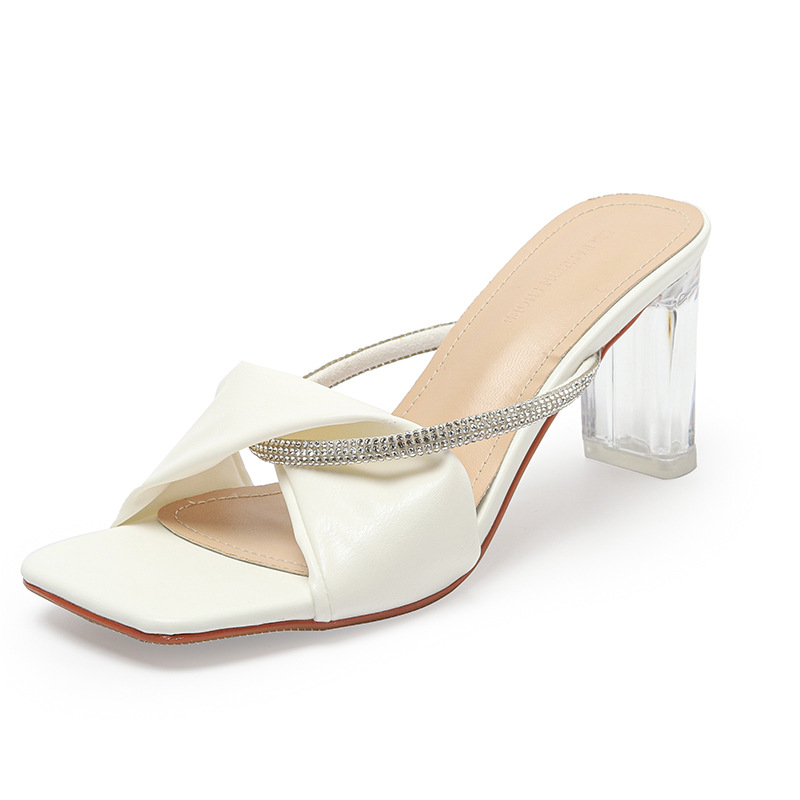 Главная страница > TM7-7 пикантные прозрачные женские туфли на высоком каблуке со стразами, новые летние сандалии и тапочки на среднем каблуке для девочек на толстом каблуке, новинка 2025, летние