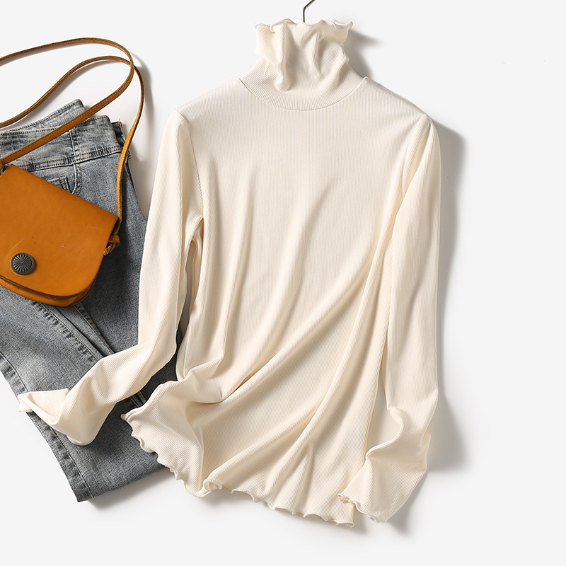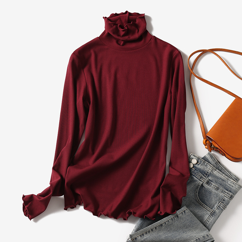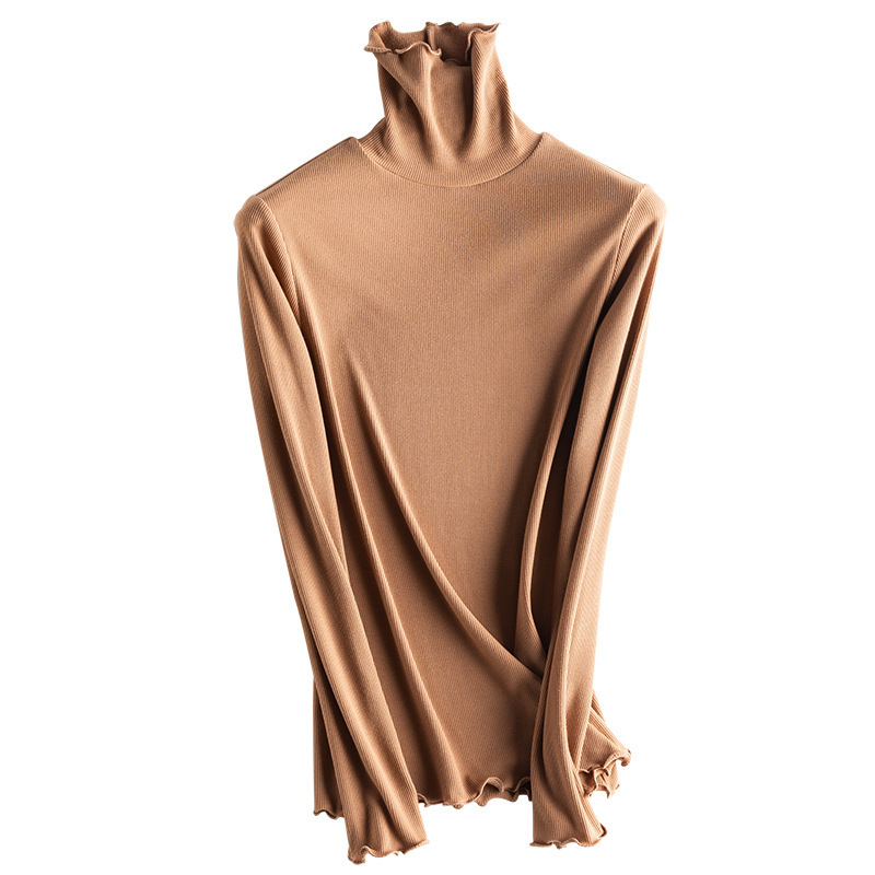 Главная страница > Новая женская базовая рубашка-водолазка из тутового шелка на осень/зиму 2025 года, с высоким воротником, на флисовой подкладке, утолщенная, с длинным рукавом, с оборками по краю.