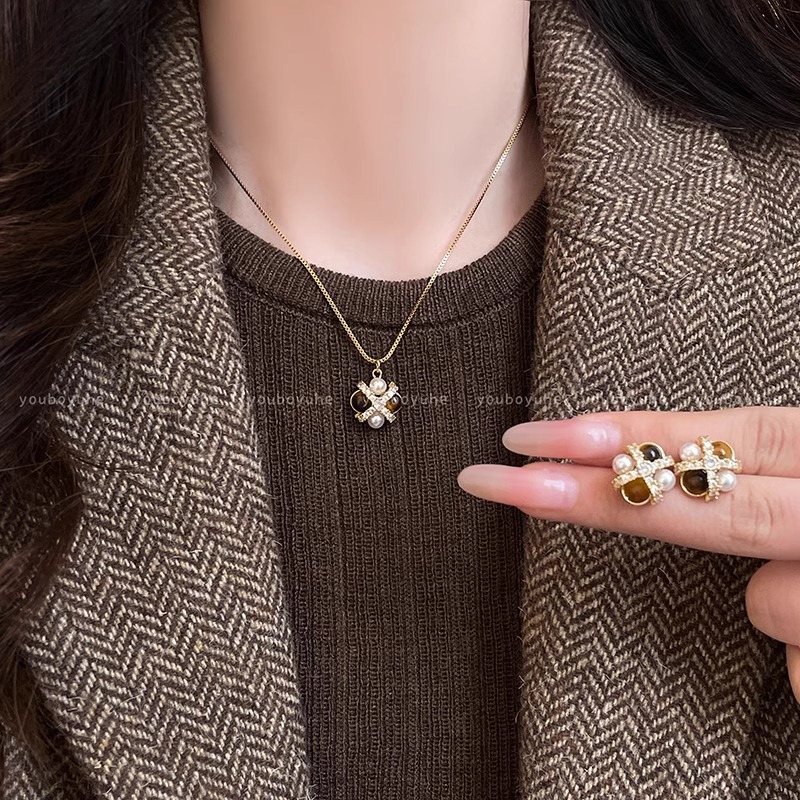 Главная страница > Винтажное жемчужное ожерелье с тигровым глазом, женское доступное роскошное нишевое ожерелье на ключице, элитные новые популярные аксессуары 2025 года