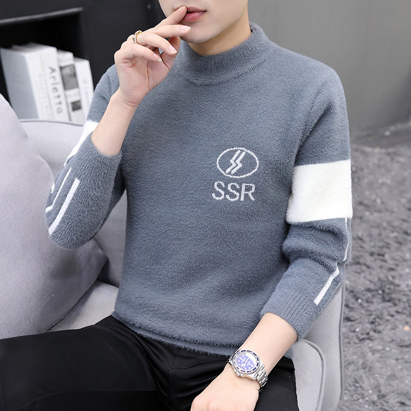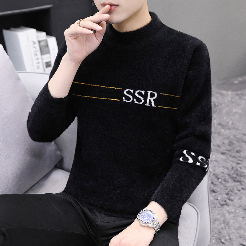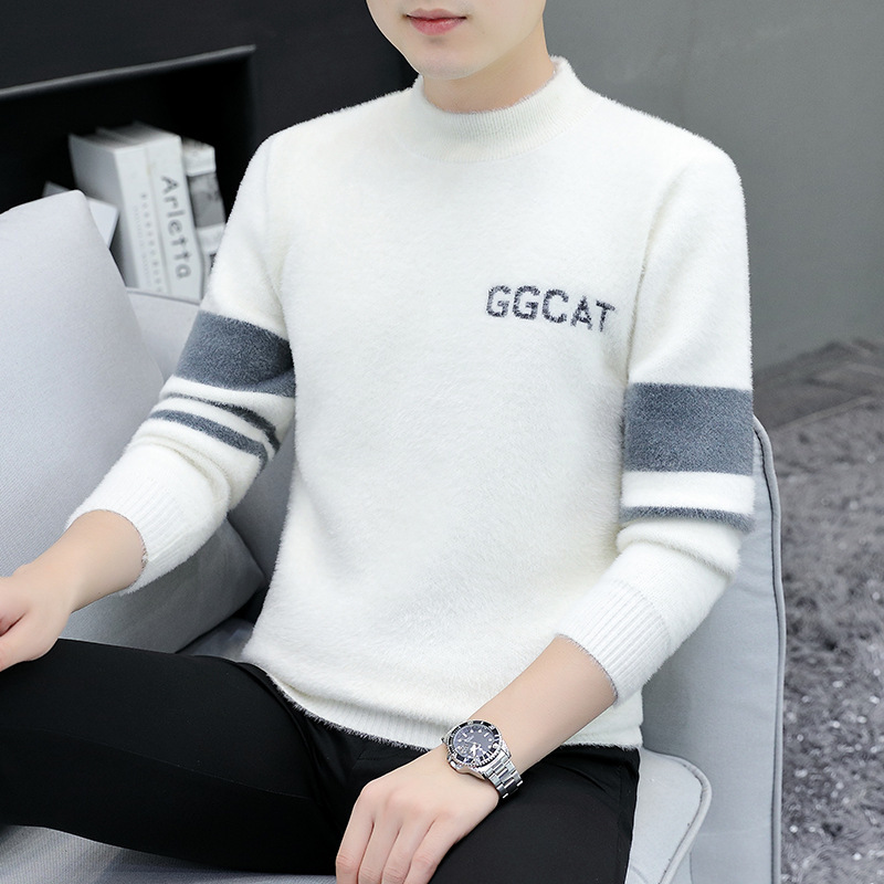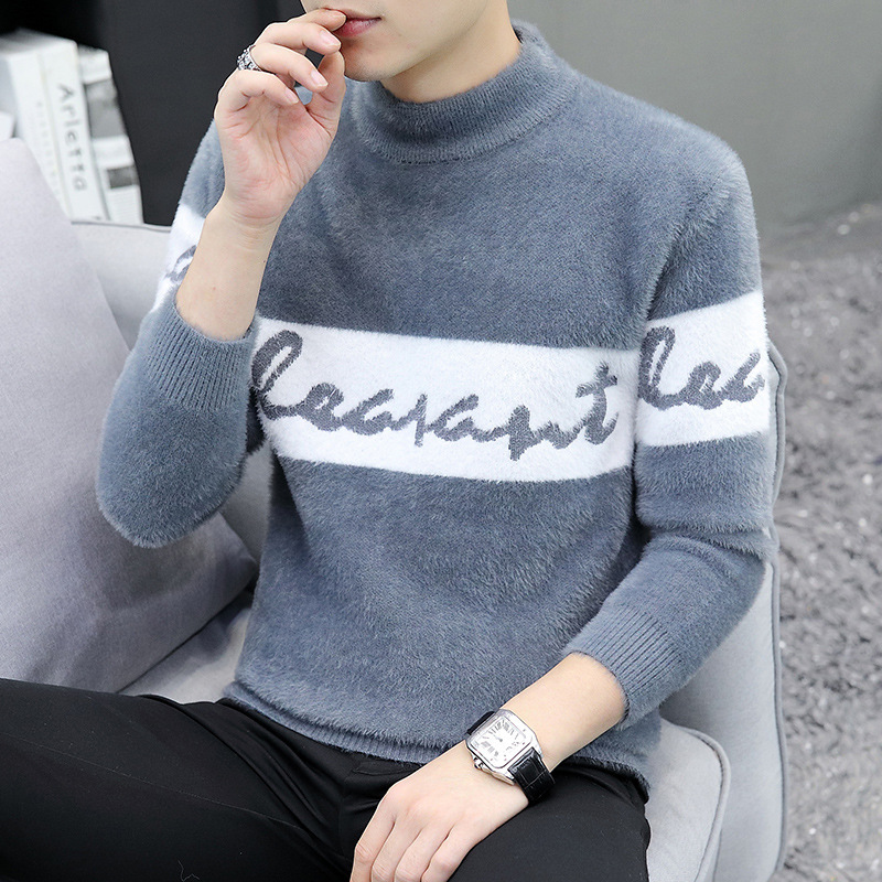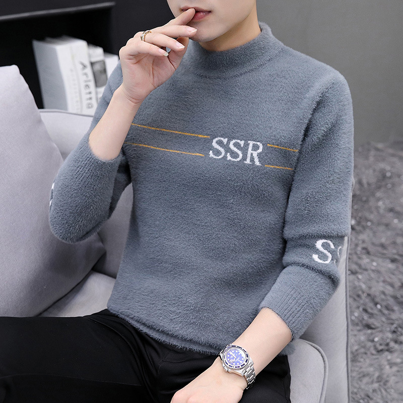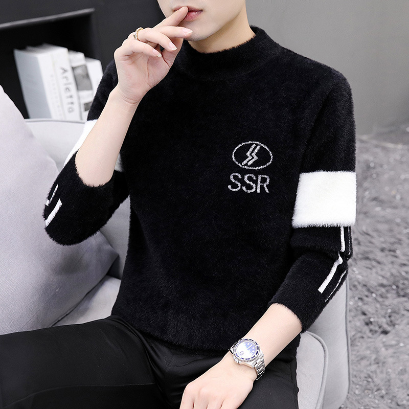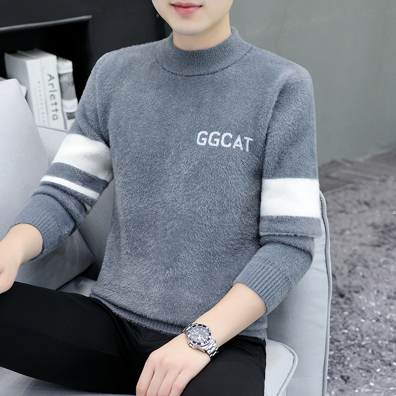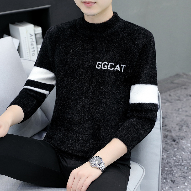 Главная страница > Молодежный свитер из искусственного норкового бархата, мужской 2023, новый мужской студенческий зимний свитер с коротким воротом, нижняя рубашка на флисовой подкладке, утолщенная