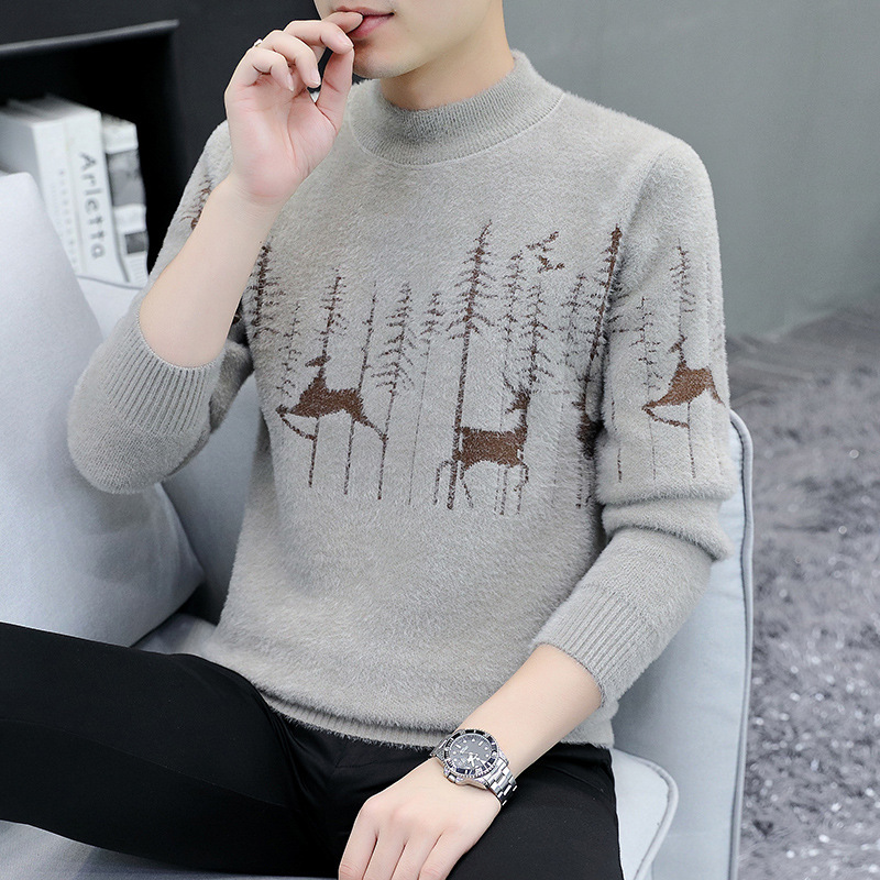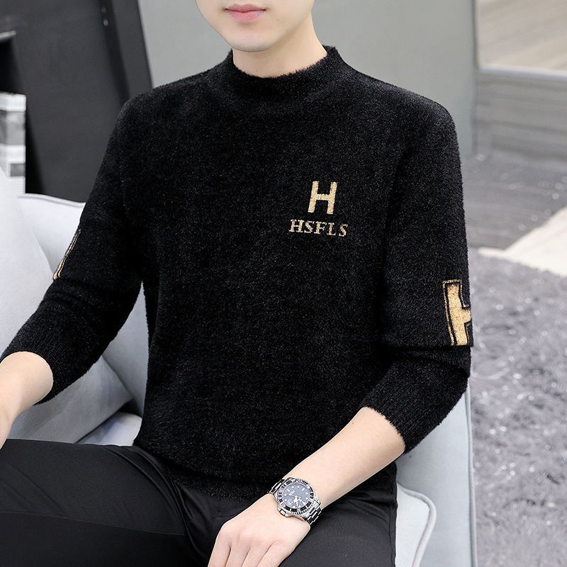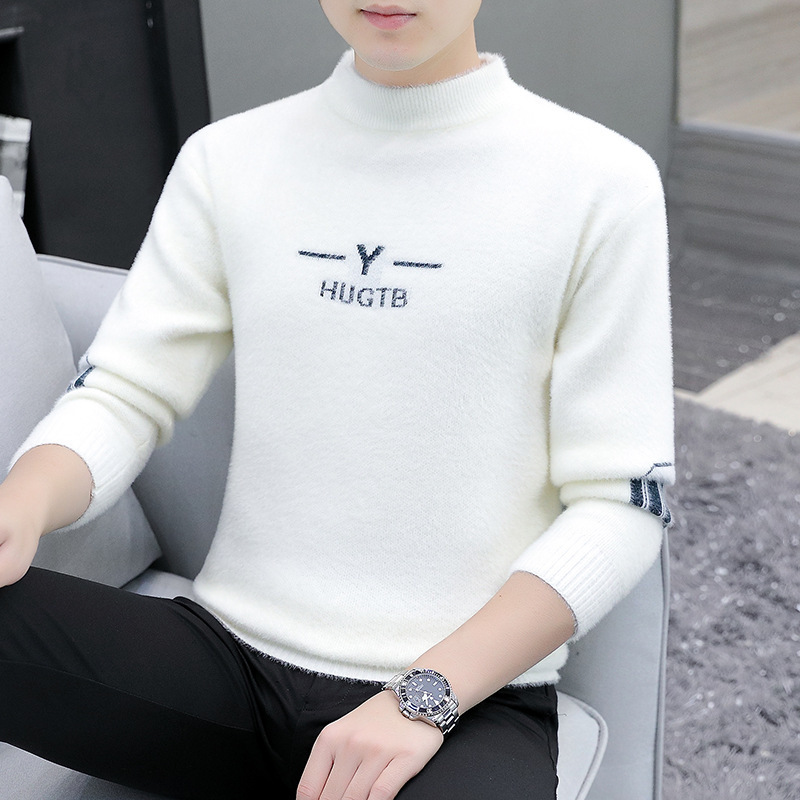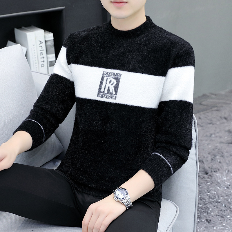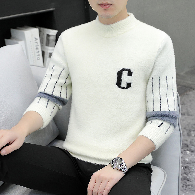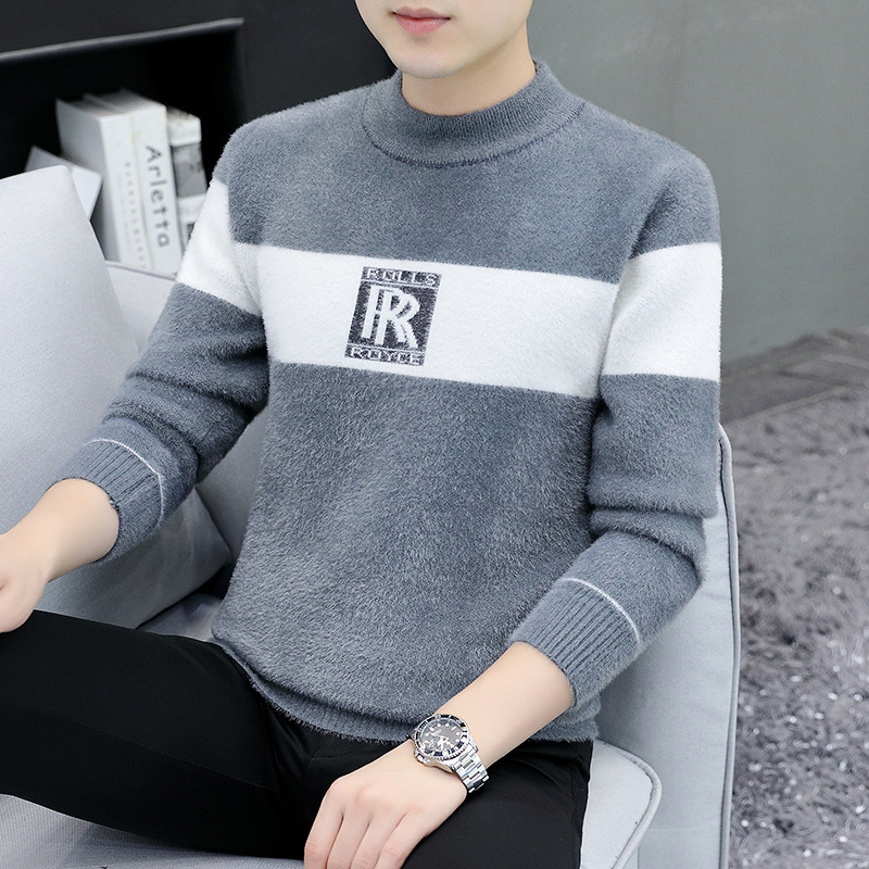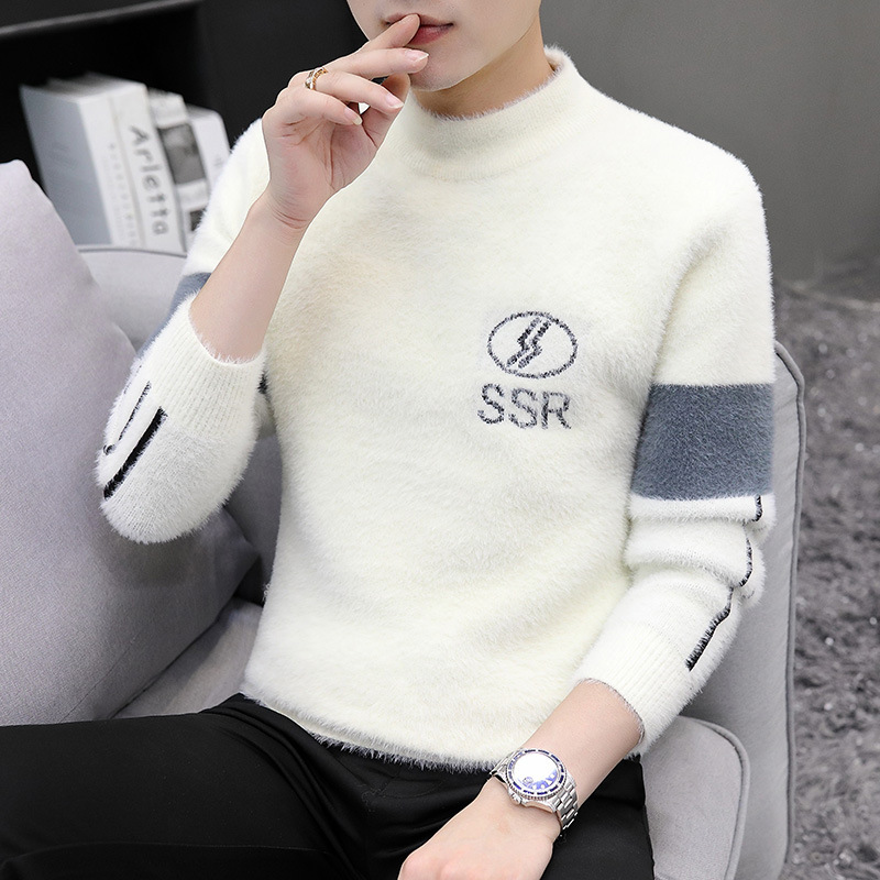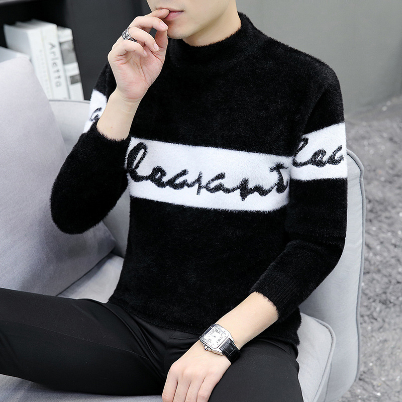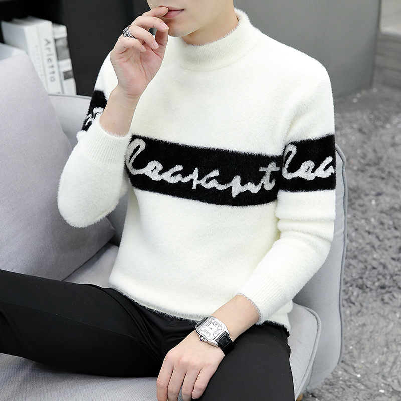 Главная страница > Молодежный свитер из искусственного норкового бархата, мужской 2023, новый мужской студенческий зимний свитер с коротким воротом, нижняя рубашка на флисовой подкладке, утолщенная