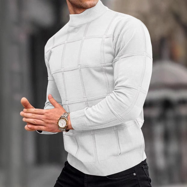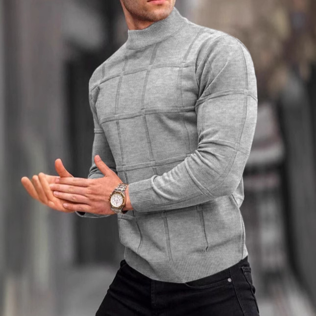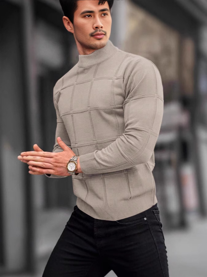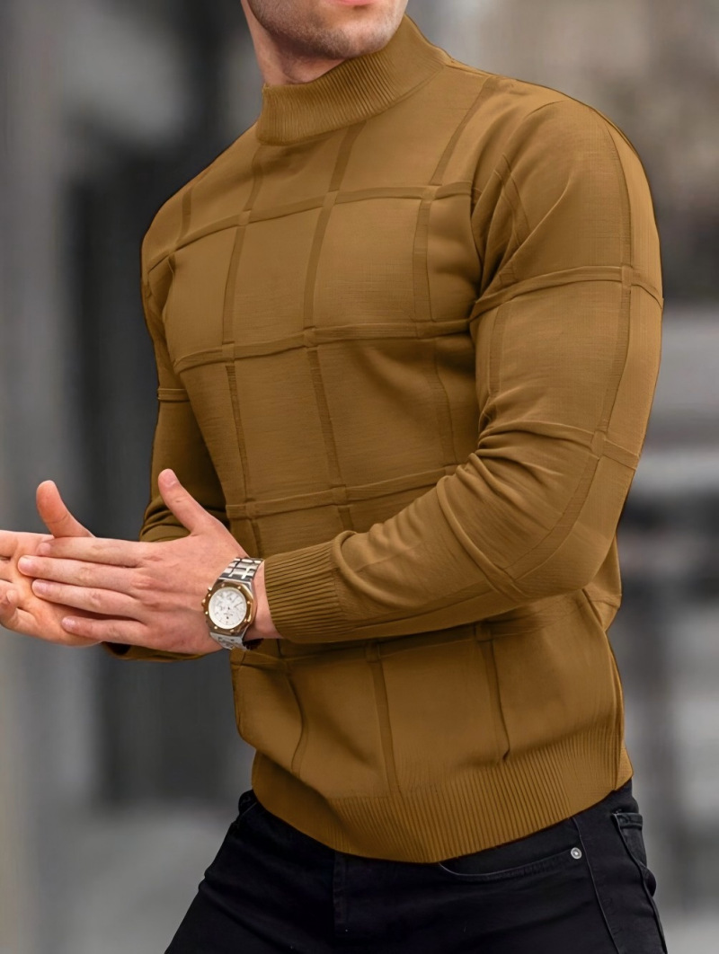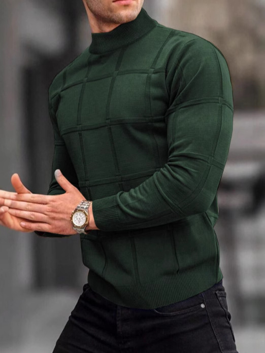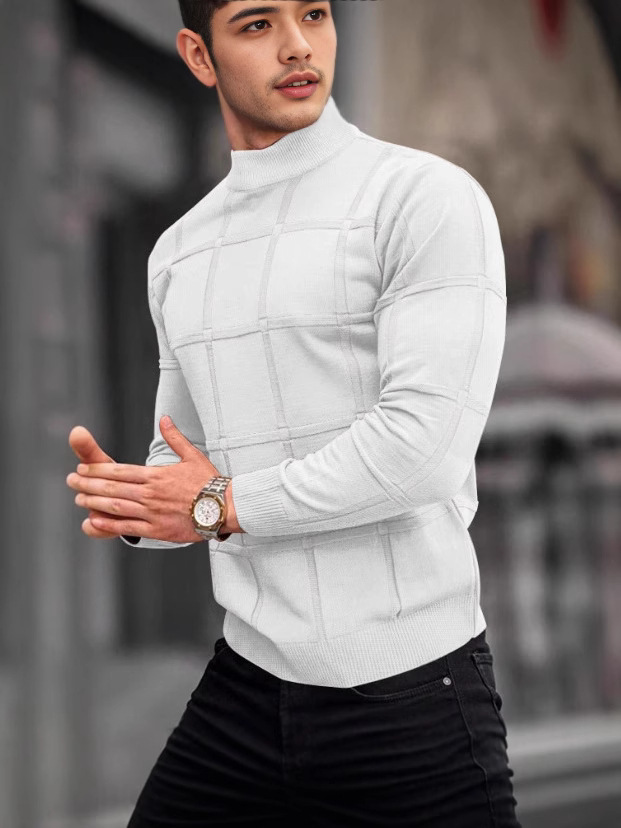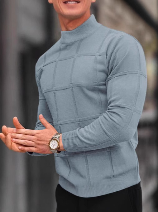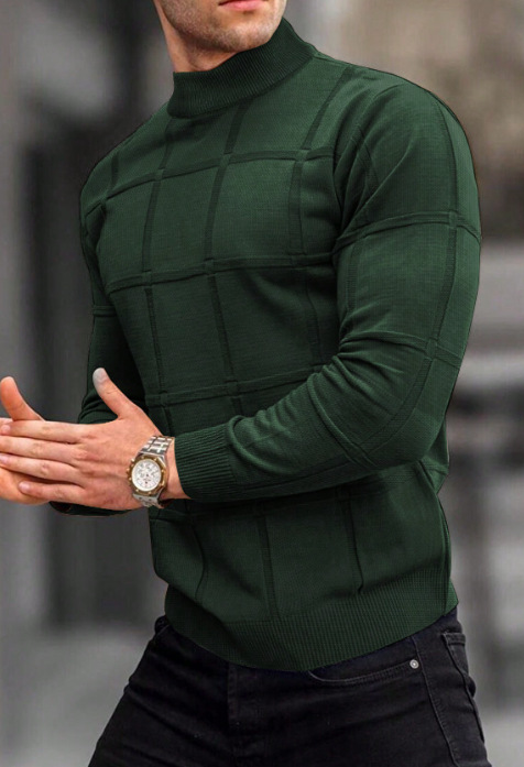 Главная страница > Amazon Европа и США мужская сплошная клетчатая текстура маленький водолазный свитер мужской топ