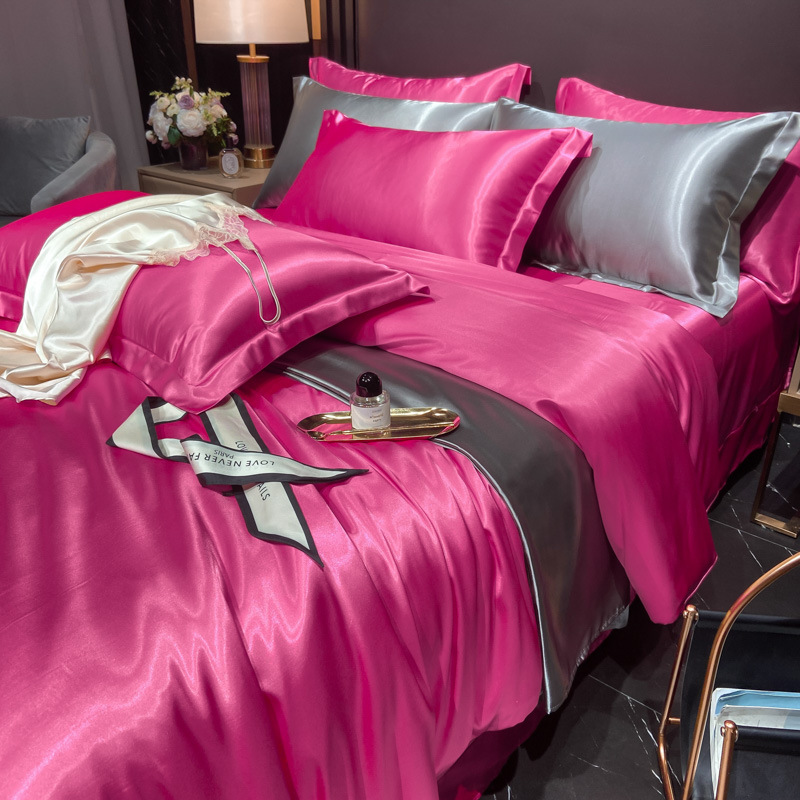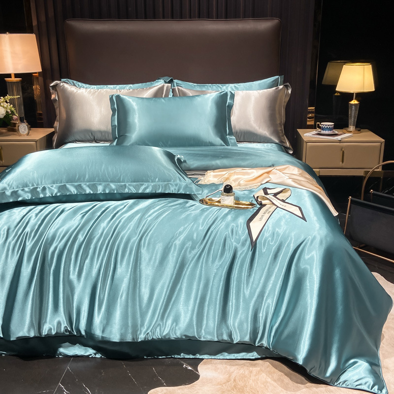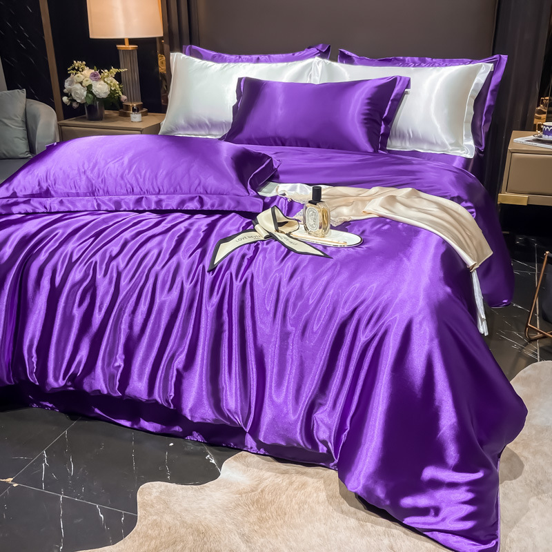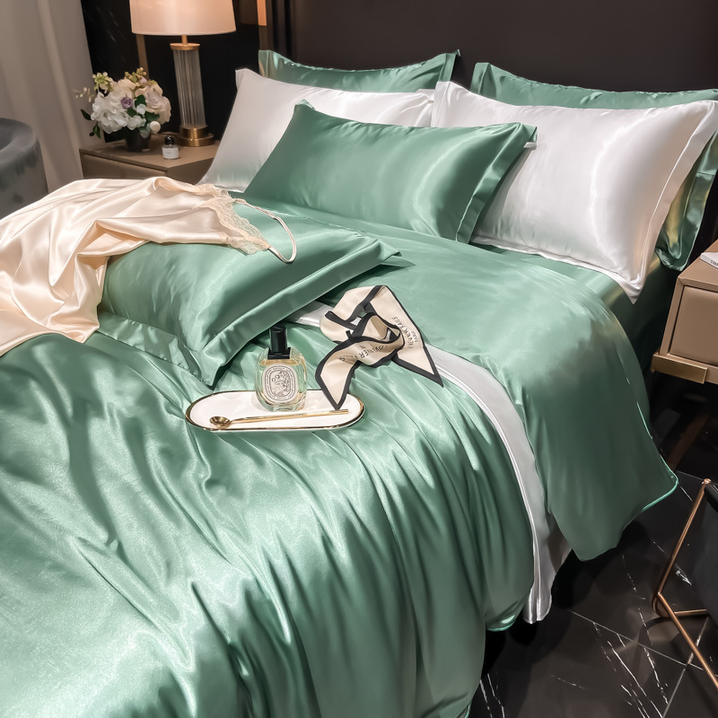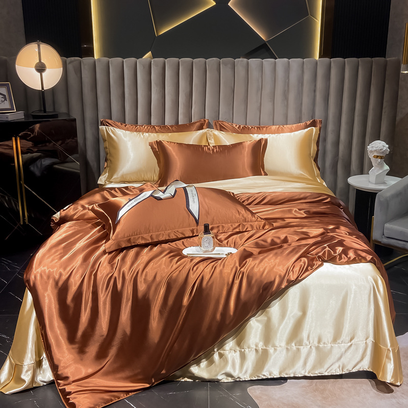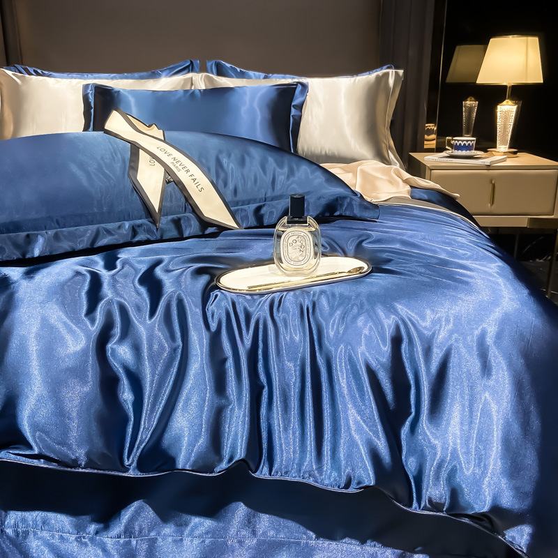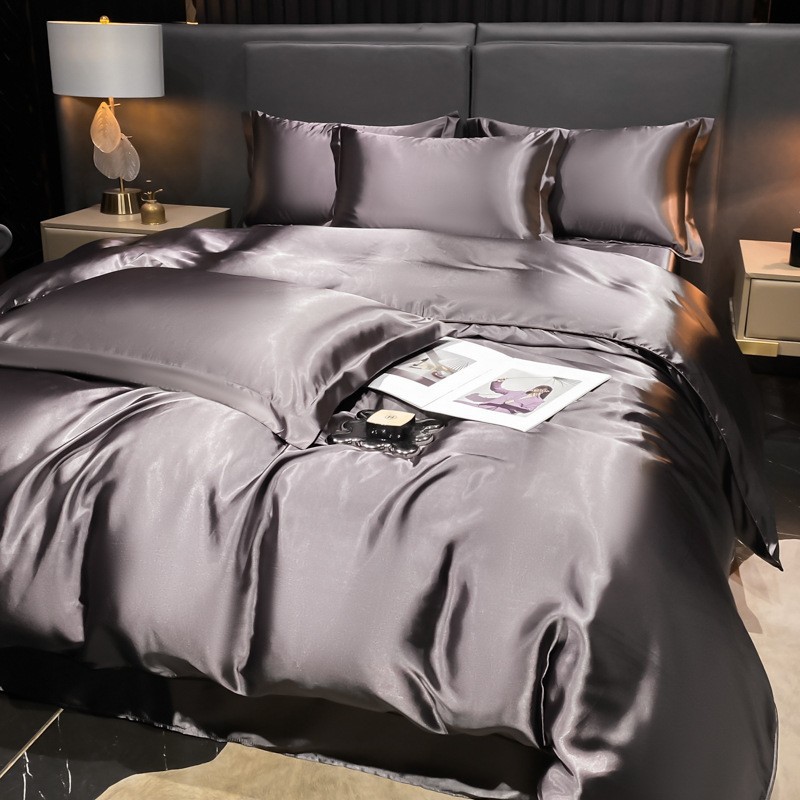 家纺四件套高端冰丝床单水洗真丝被套床笠丝滑裸睡床上用品轻奢