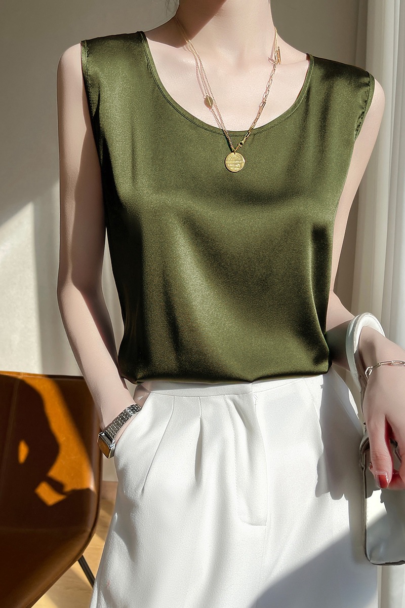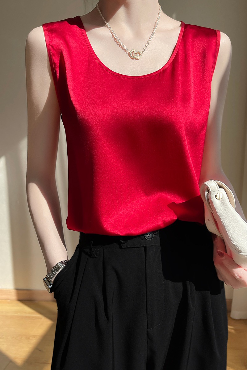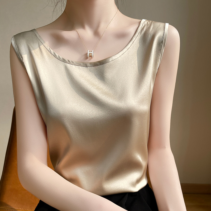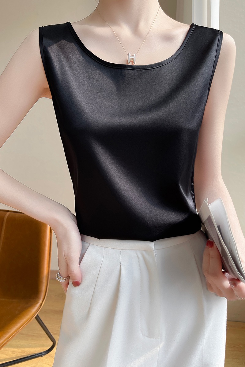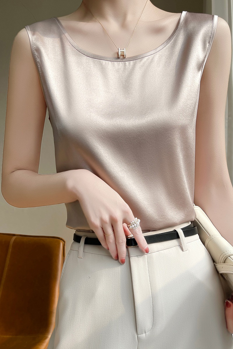 Главная страница > Летний женский маленький костюм-бретелька из искусственного шелка с круглым вырезом и свободным верхним топом без рукавов, рубашка с тонким низом