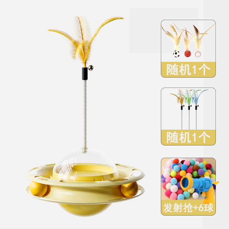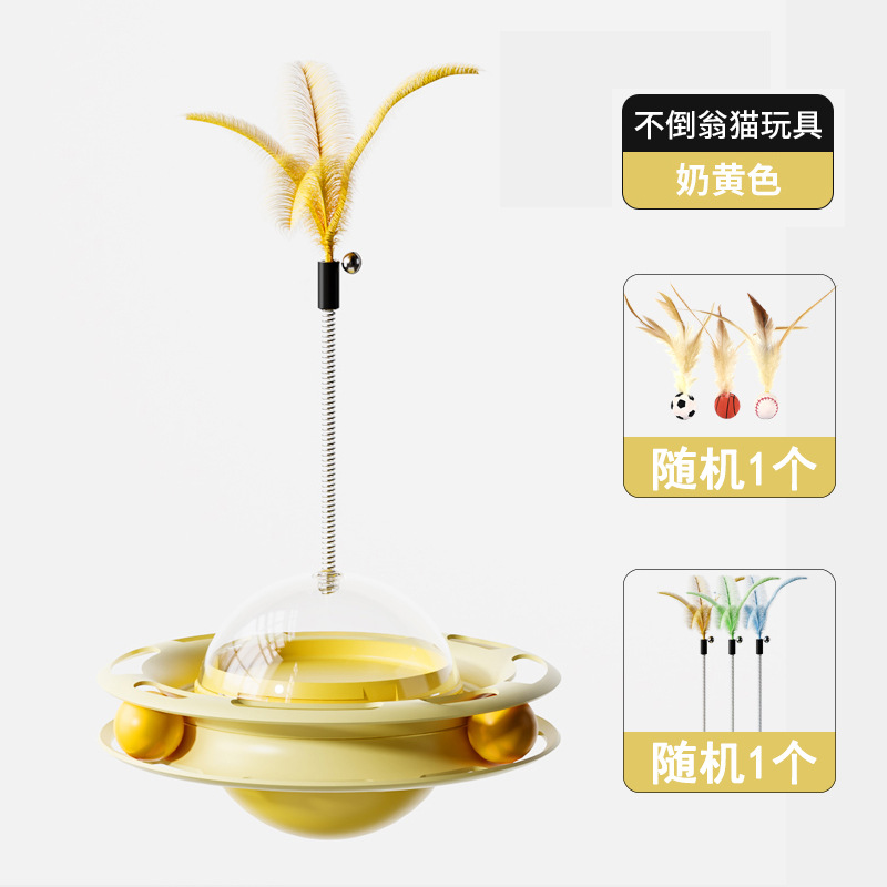Желтый - стаканчик для утечки еды + прыгающий мяч + перо
