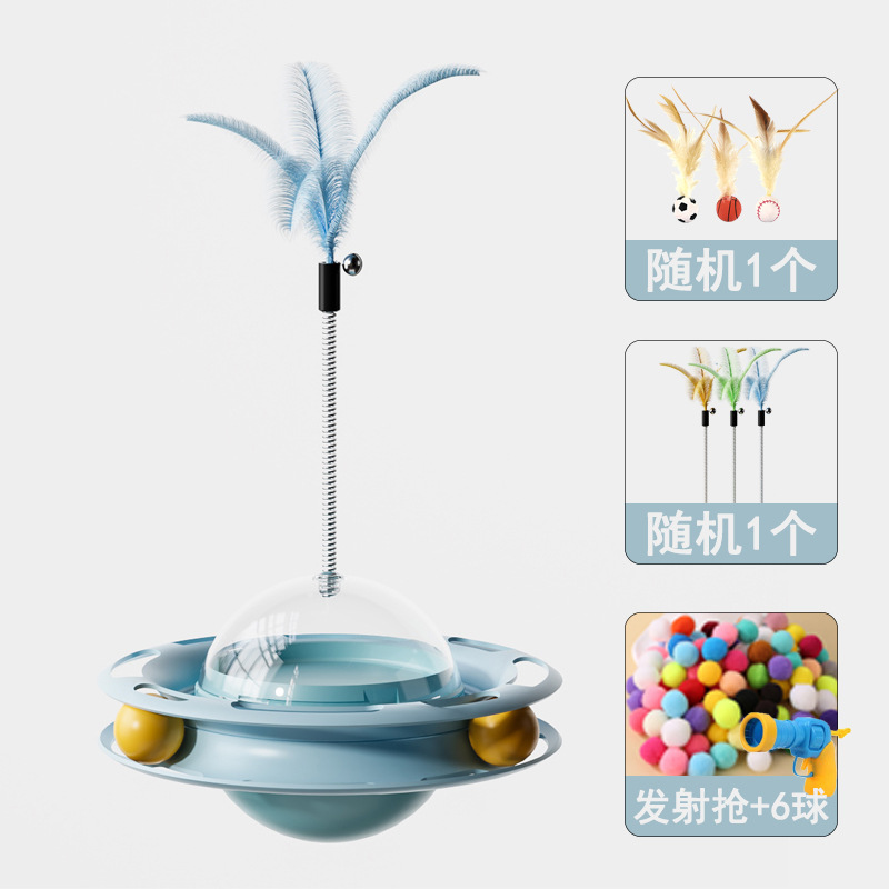 Синий - стакан для утечки еды + прыгающий мяч + перо + плюшевый пистолет