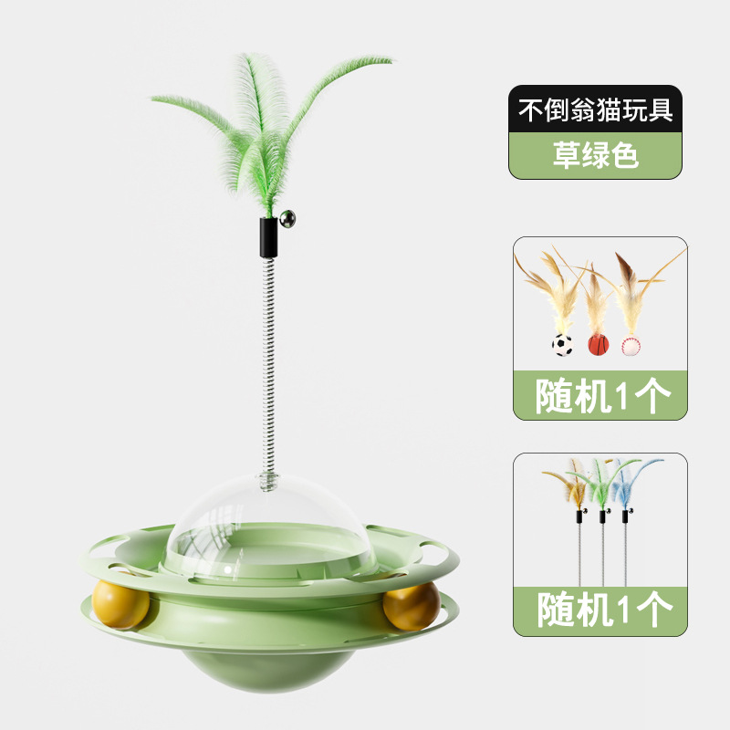 Зеленый — стаканчик для утечки еды + прыгающий мяч + перо.