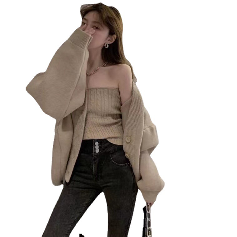 Главная страница > Женская куртка из двух частей, Новинка осени и зимы 2022 года, высококачественный внутренний жилет без бретелек Sense, вязаный кардиган с длинными рукавами, Модный жакет