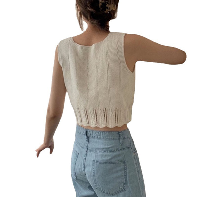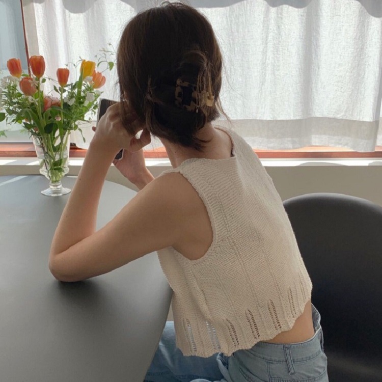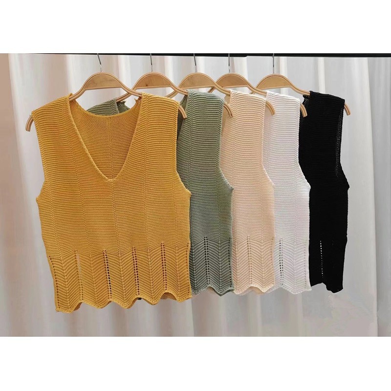Главная страница > Новый летний тонкий вязаный жилет в корейском стиле 2025 года, свободный, стройнящий, шикарный, без рукавов, с V-образным вырезом, модный женский топ