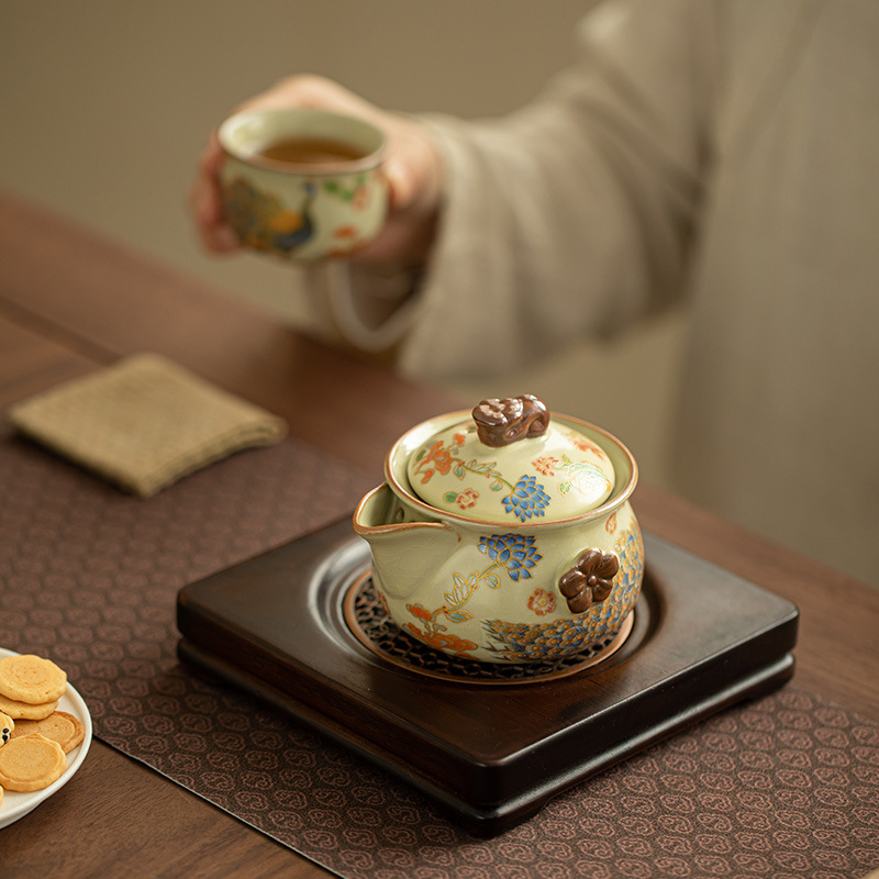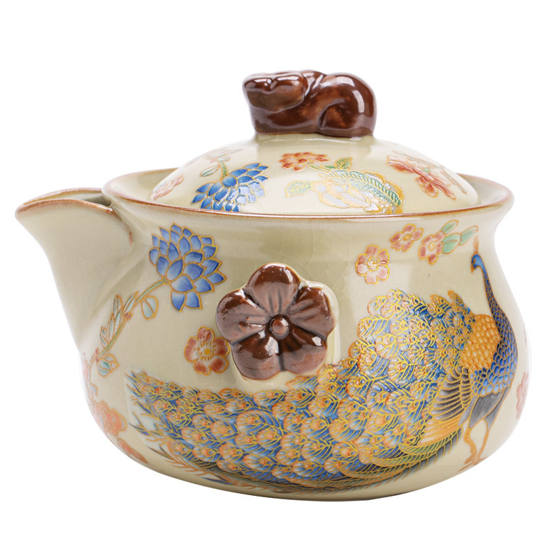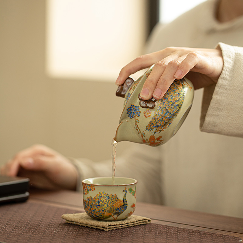 Главная страница > Керамический чайный набор Ruyao с эффектом кракелюра, винтажная бутылка с павлином, фарфоровый ручной чайник Ru, набор для кунг-фу чая