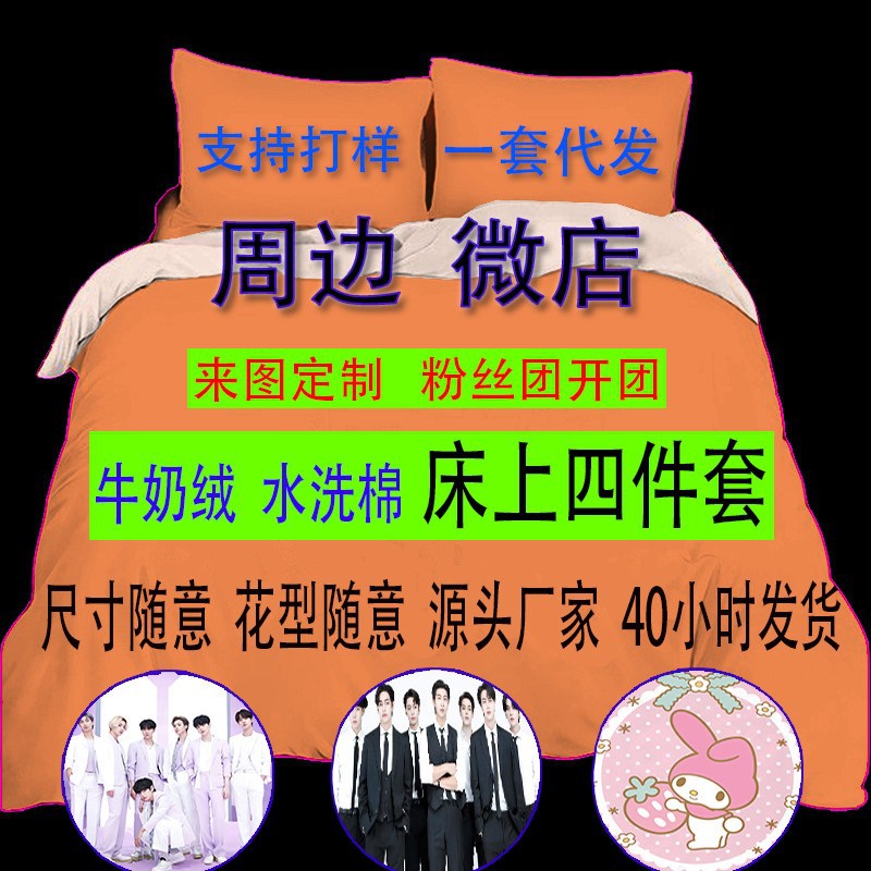 Комплект постельного белья из чистого хлопка на заказ, состоящий из четырех предметов: комплект из четырех предметов с молочным велюром, простыня из стираного хлопка и пододеяльник.
