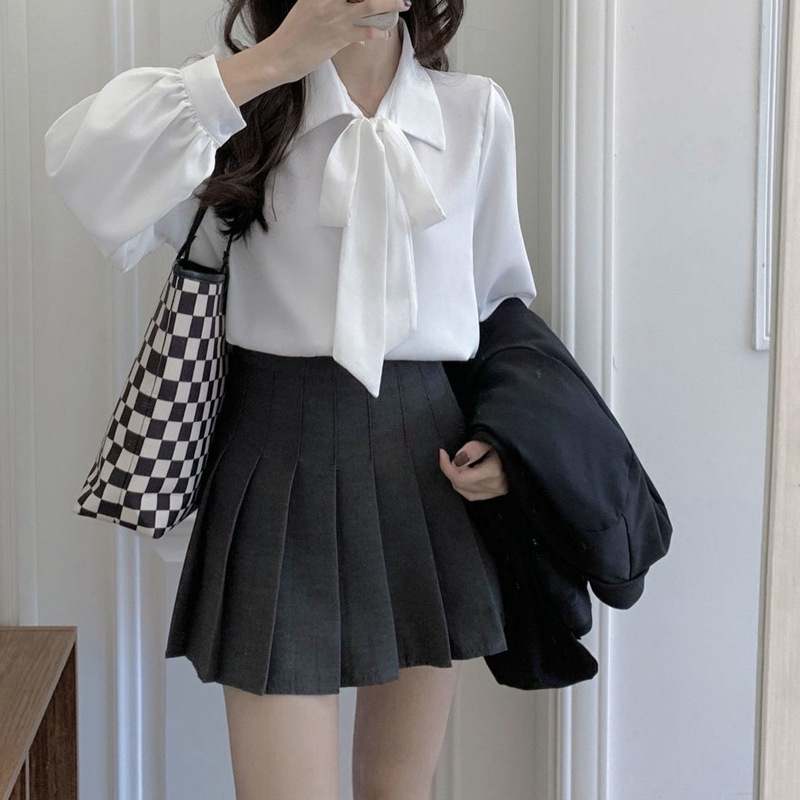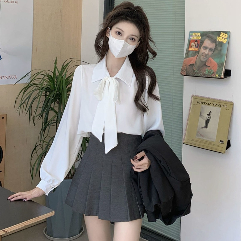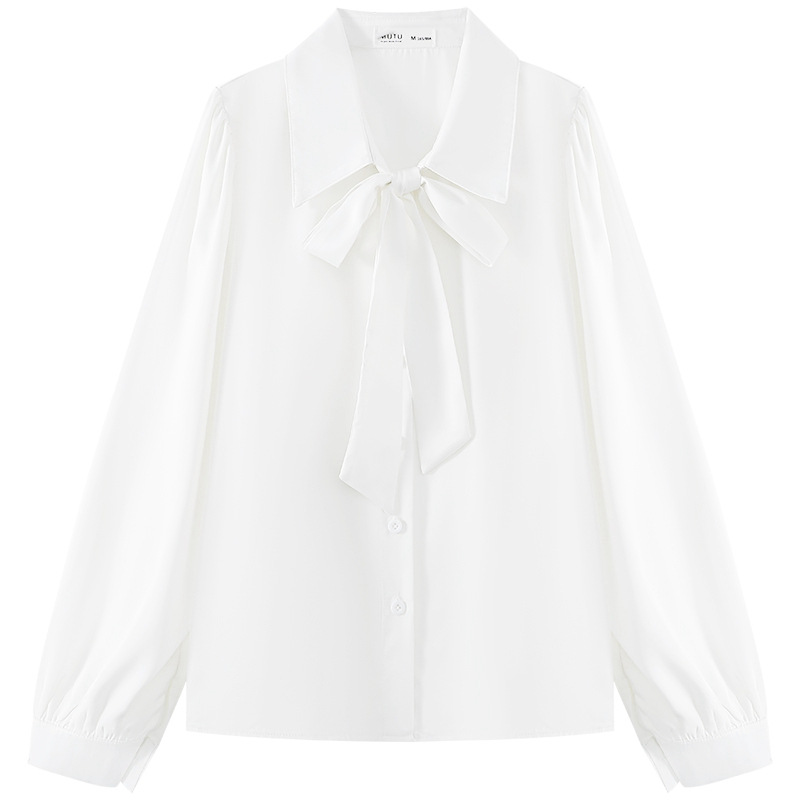 Главная страница > Весна и осень с рукавами-фонариками, новая рубашка с бантом, белая внутренняя рубашка, Женский официальный профессиональный Топ на шнуровке