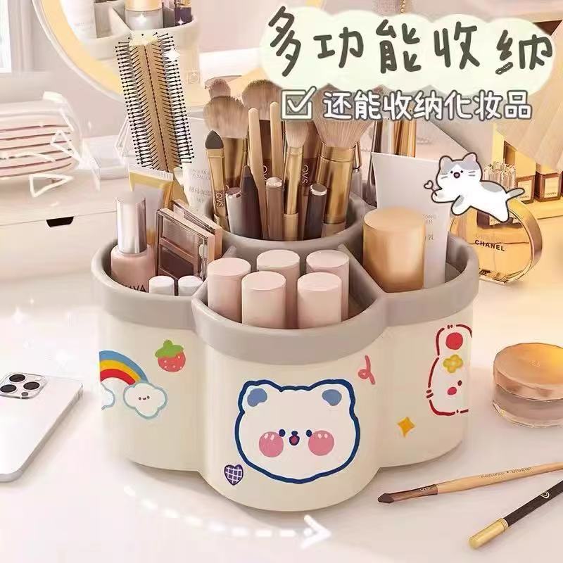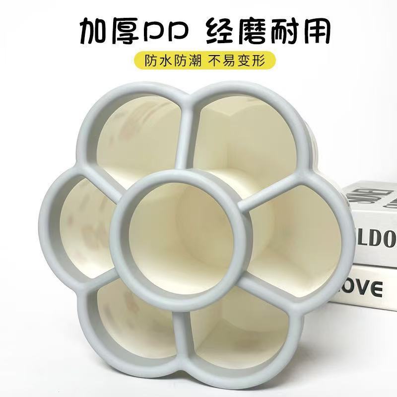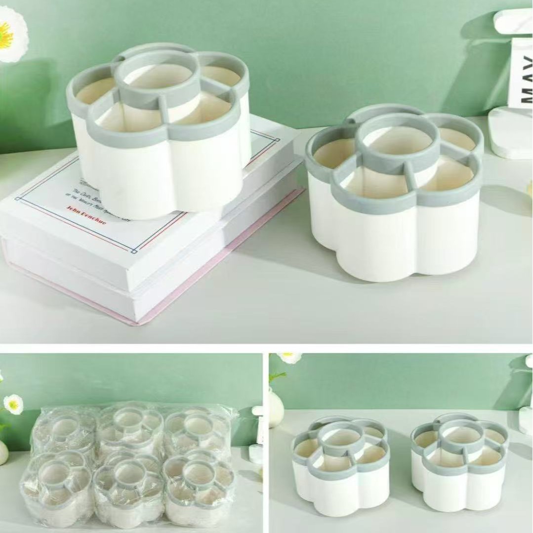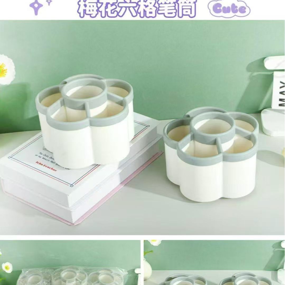 Главная страница > Вращающийся держатель для ручек с 6 отделениями в форме сливового цвета, многофункциональный настольный ящик для хранения большой емкости, высококачественное хранилище для кистей для макияжа