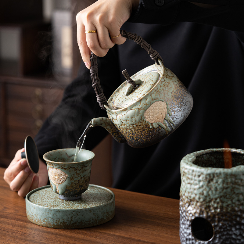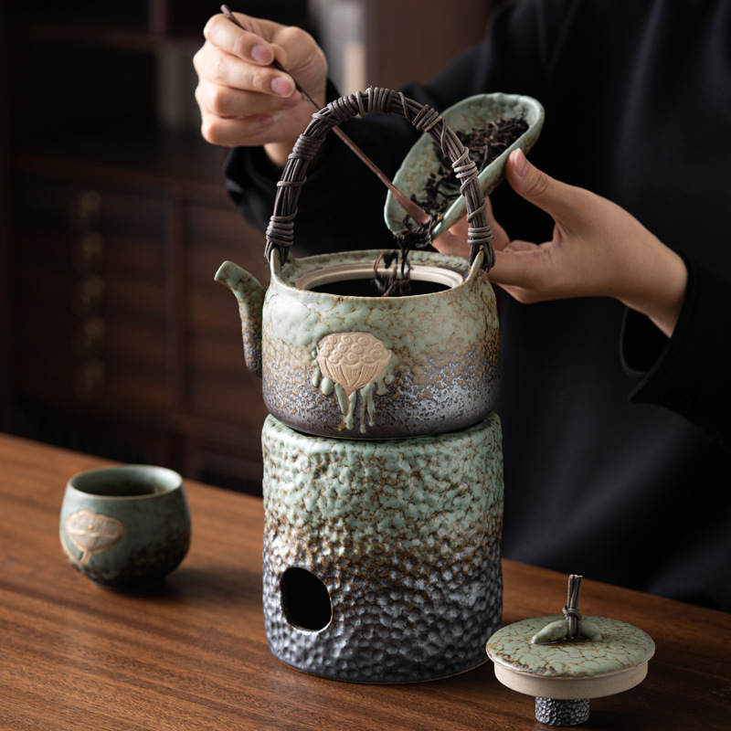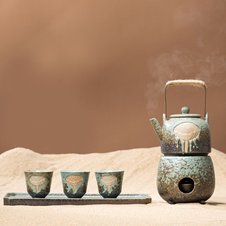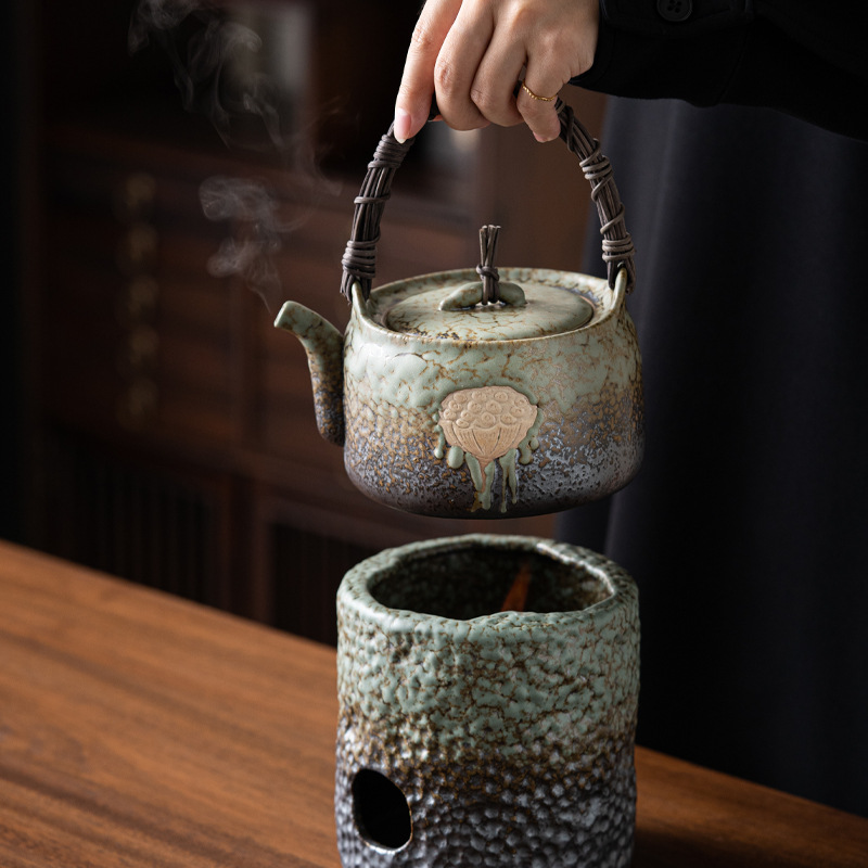 Главная страница > Набор для заваривания чая на спиртовой плите с чайником и чайником для домашнего использования, деревенский керамический чайный сервиз для открытого пламени.