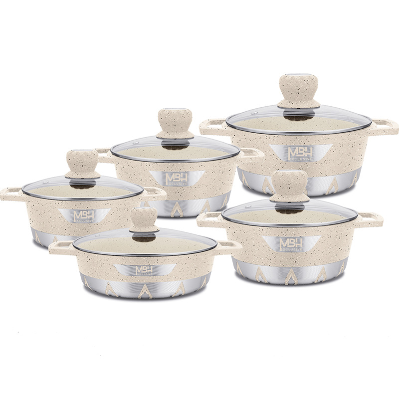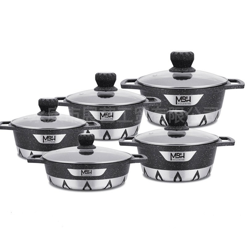 Трансграничный алюминиевый литой под давлением набор из 10 кастрюль с комбинированными крышками, кастрюли с антипригарным покрытием, суповые кастрюли, кастрюли, наборы кастрюль, наборы медицинских рисовых камней, горячий стиль