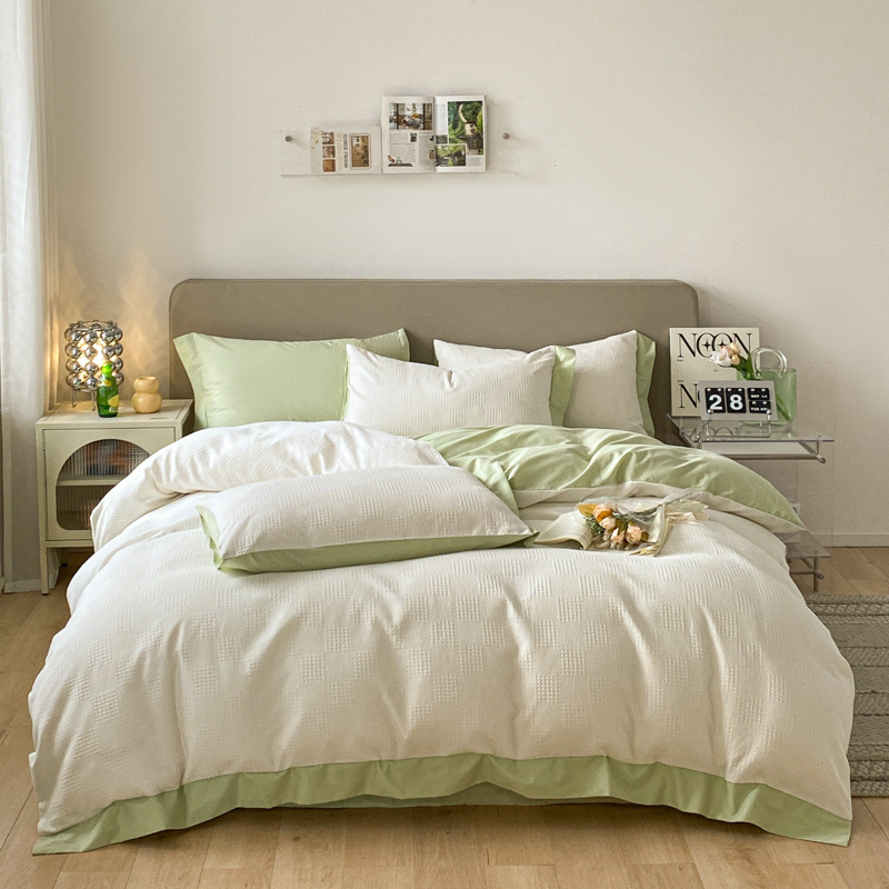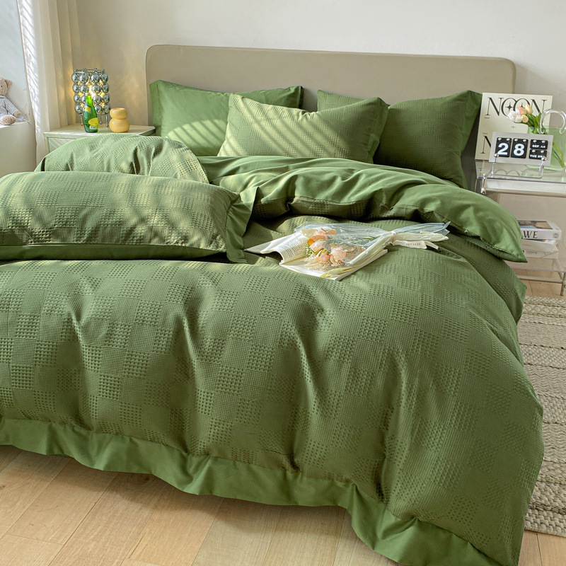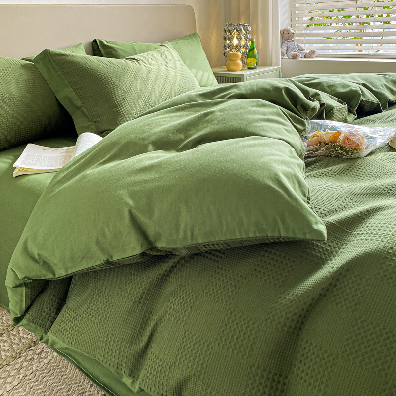 Главная страница > Комплект постельного белья из четырех предметов с эффектом премиум-класса, вафельное плетение, простыни и пододеяльник из чистого хлопка, подходит для сна без одежды, мягкий и приятный для кожи, зеленый.