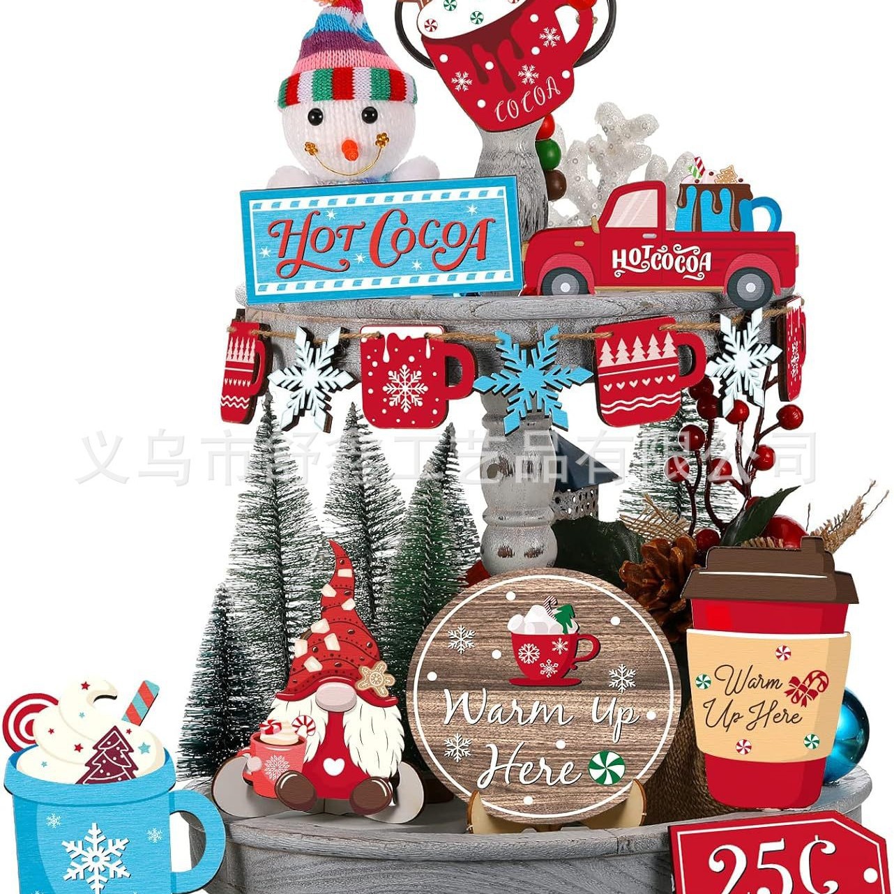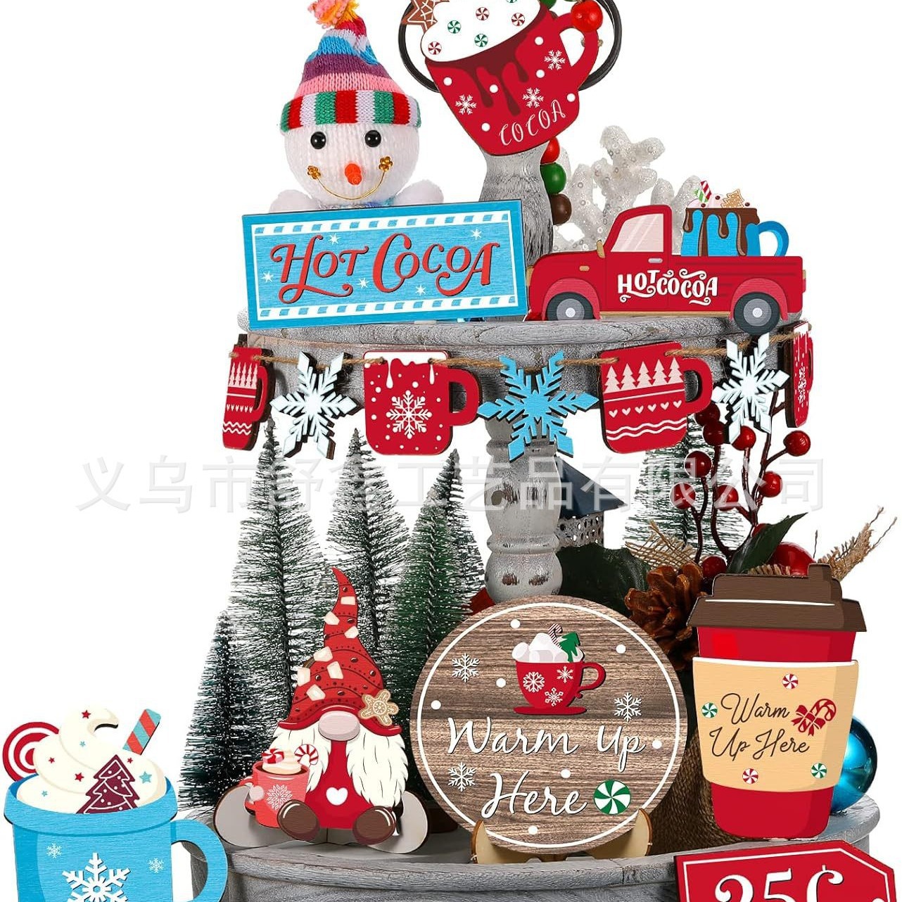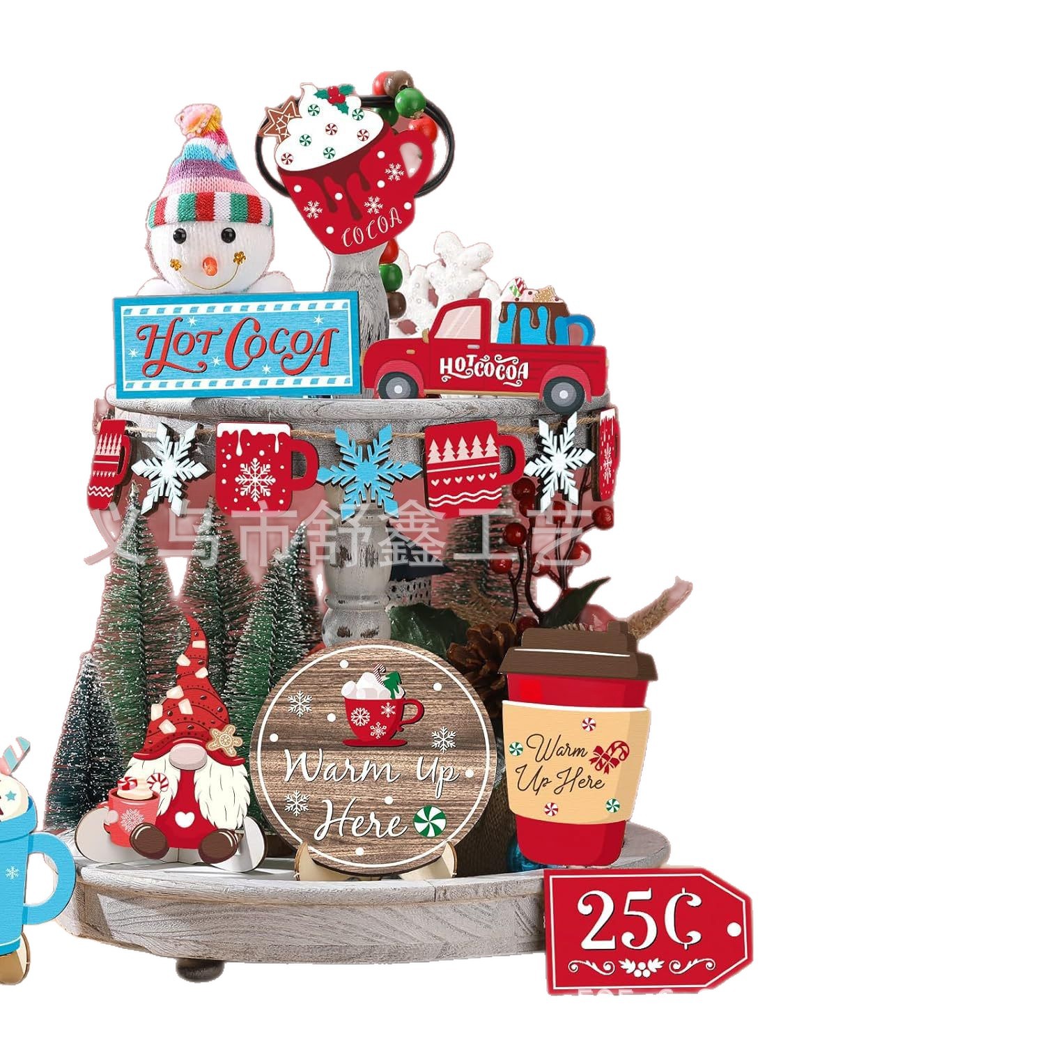 Главная страница > 16 шт., рождественские украшения, рождественские многослойные украшения для подноса, зимние напитки, рабочий стол, горячий какао, фермерский дом, семья, зима