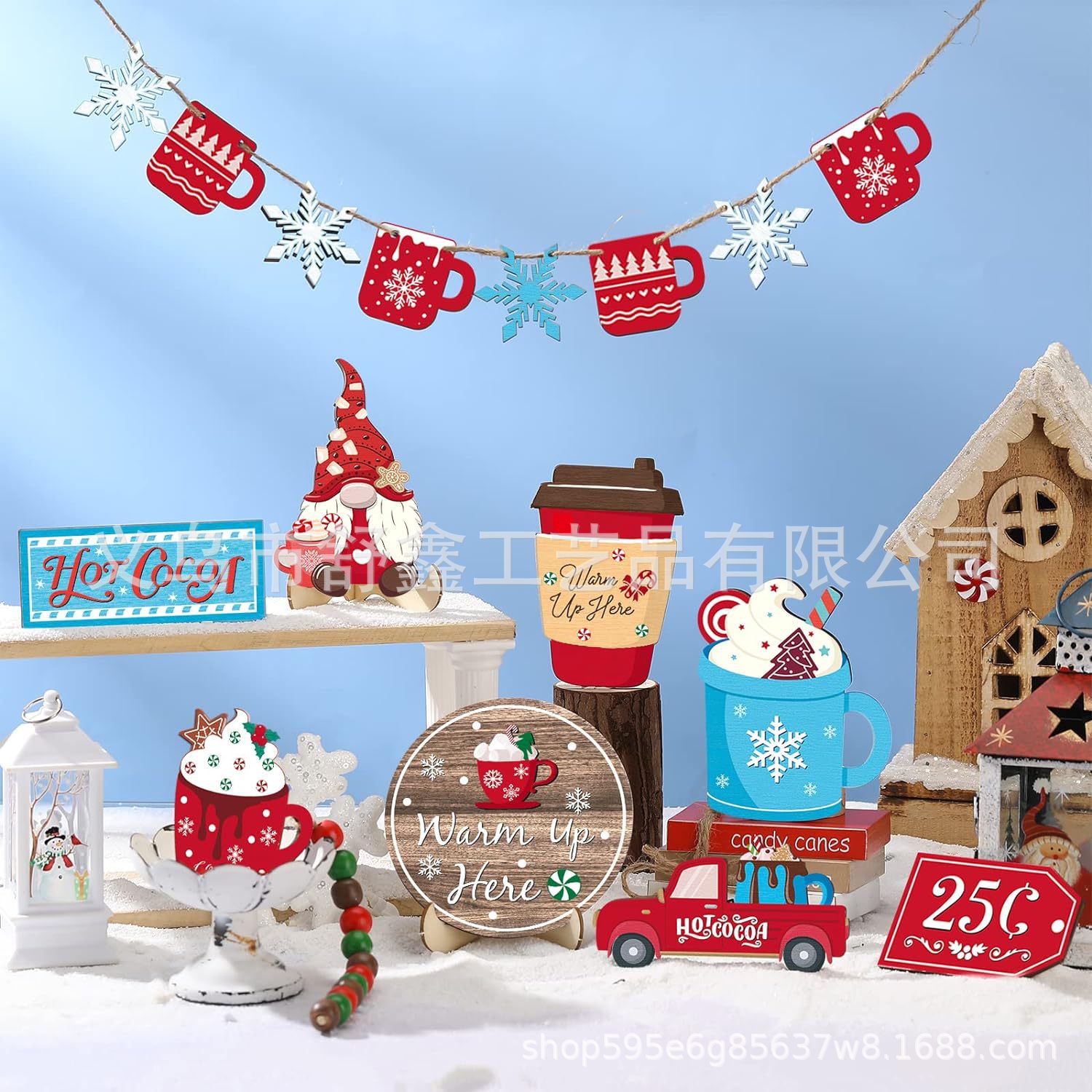 16 шт., рождественские украшения, рождественские многослойные украшения для подноса, зимние напитки, рабочий стол, горячий какао, фермерский дом, семья, зима