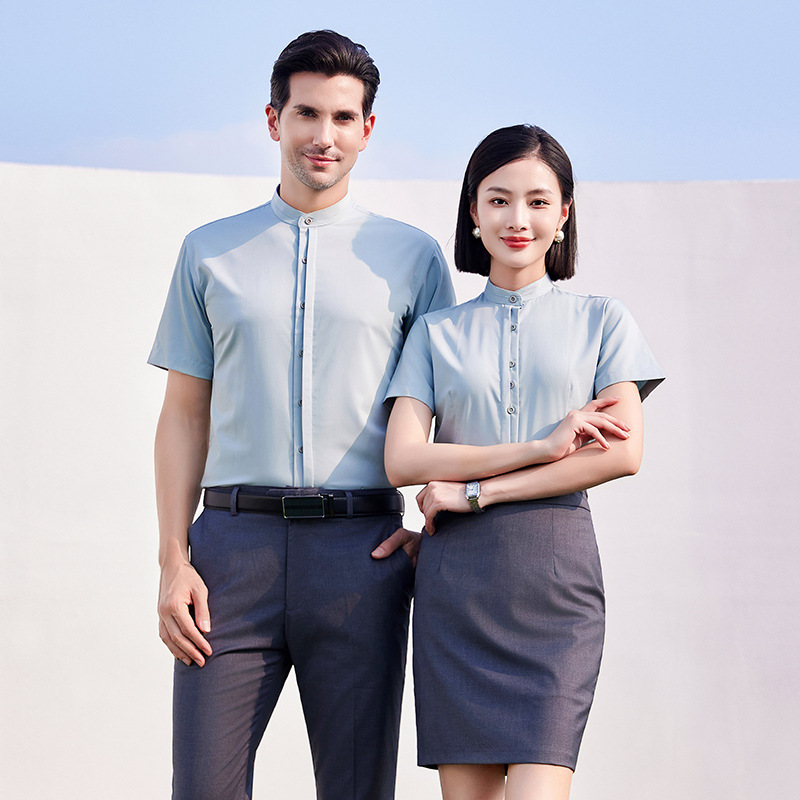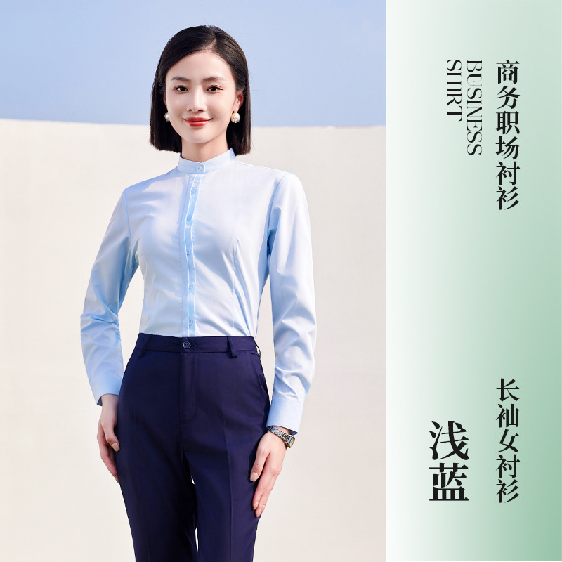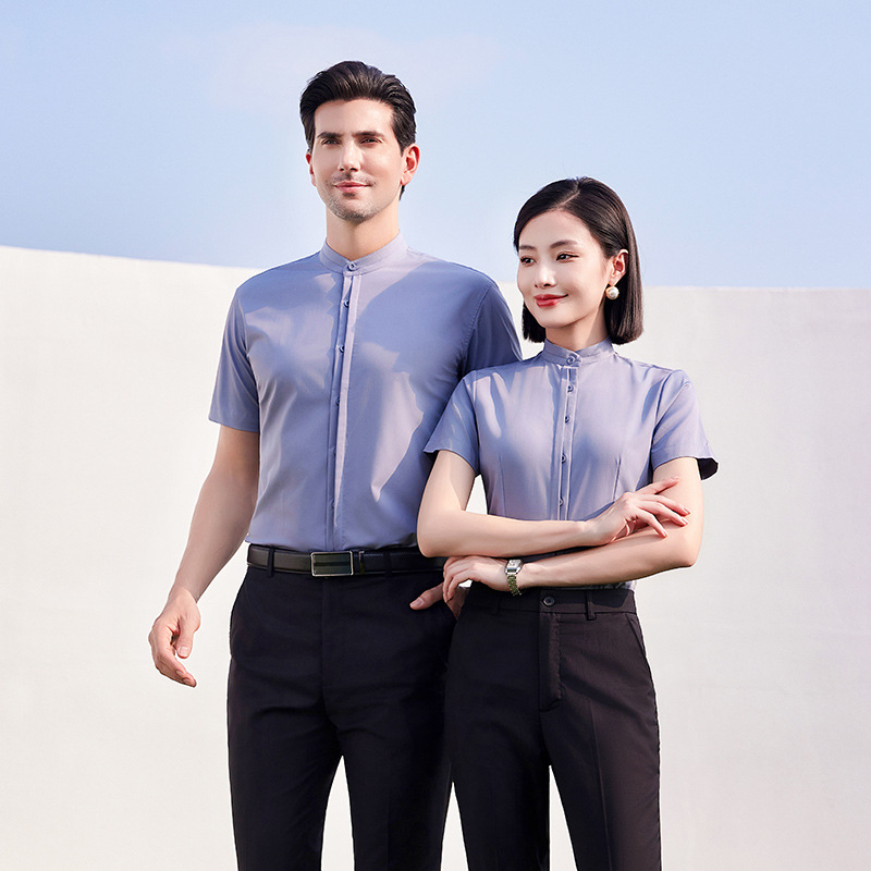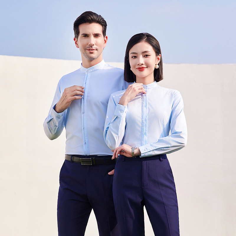 Главная страница > Новая рубашка в китайском стиле с воротником-стойкой, женская профессиональная рабочая одежда с длинными рукавами, официальная рабочая одежда, деловые мужские и женские рубашки, летние
