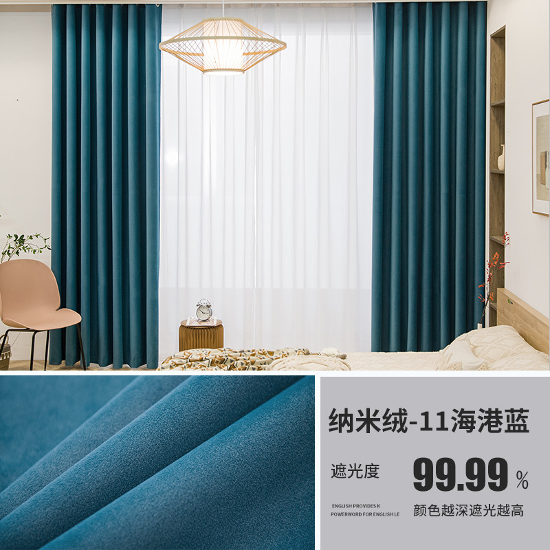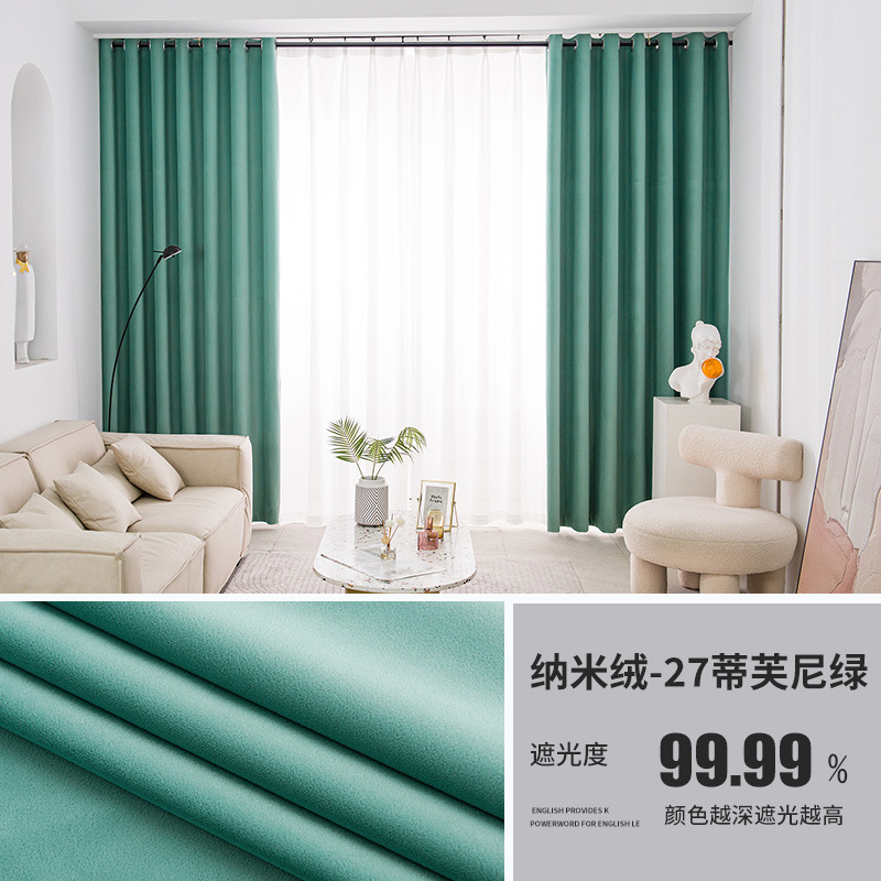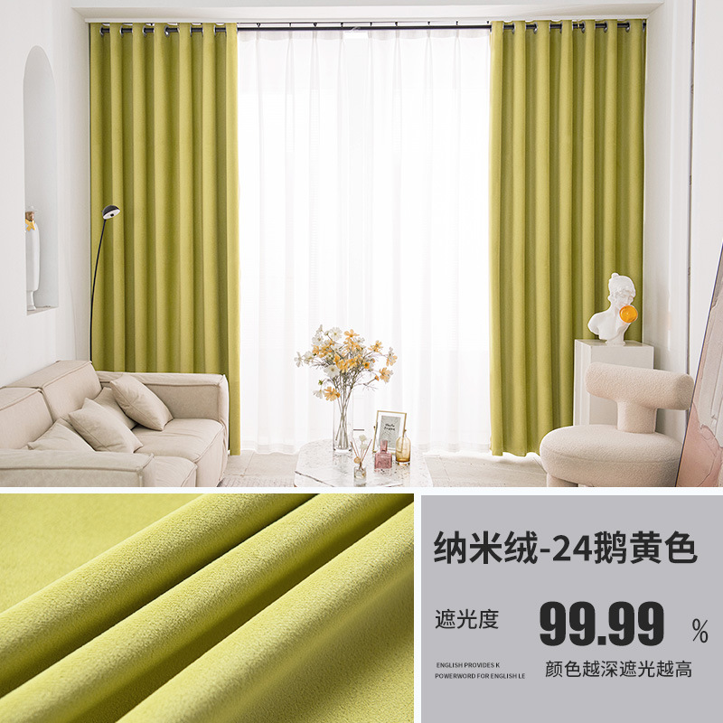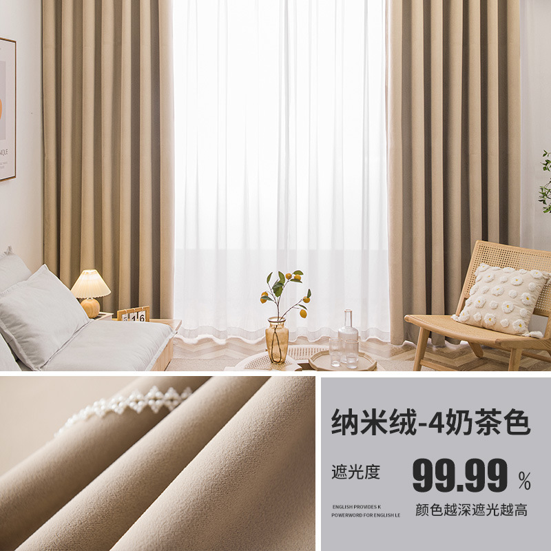 Nordic Entry Luxury Nano Velvet Матовая короткая бархатная многослойная композитная Солнцезащитная ткань Теплоизоляция Гостиная Занавеска с эркетом Готовая продукция