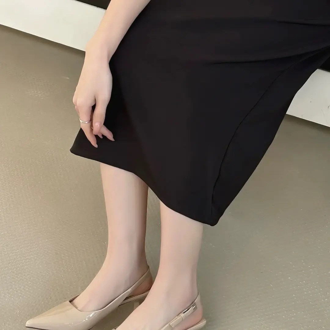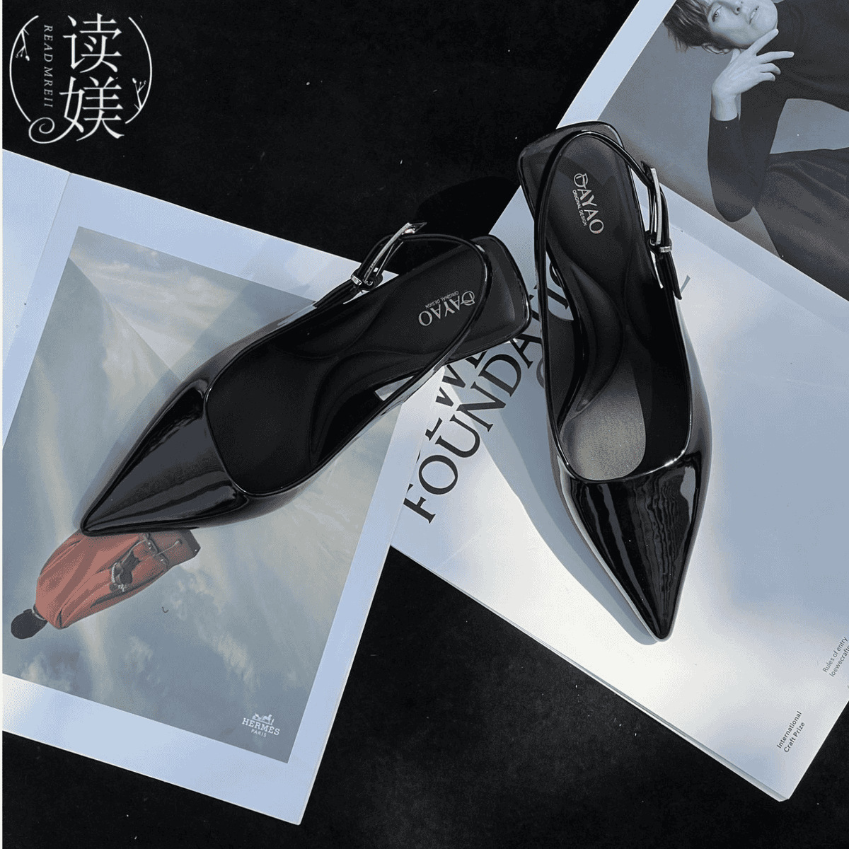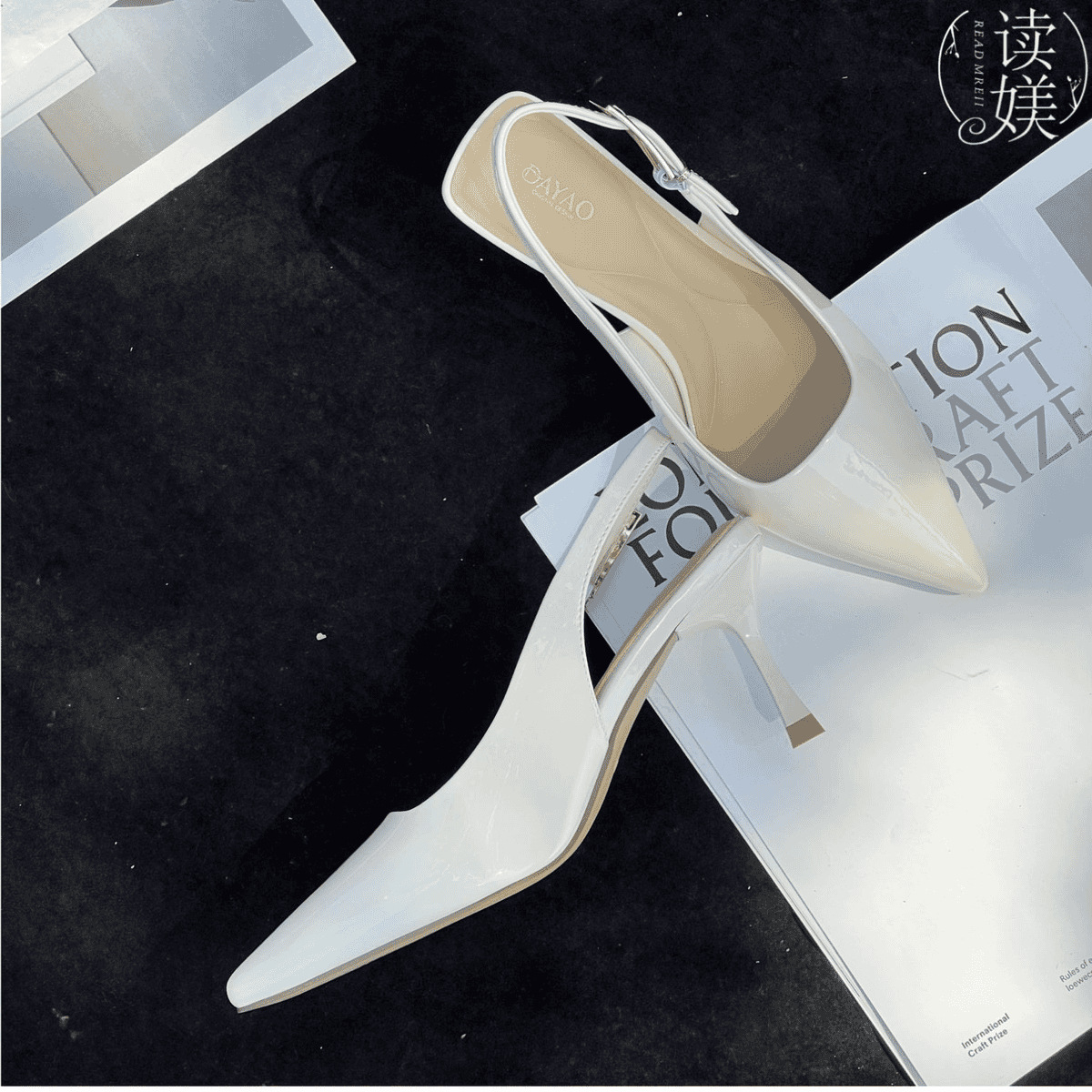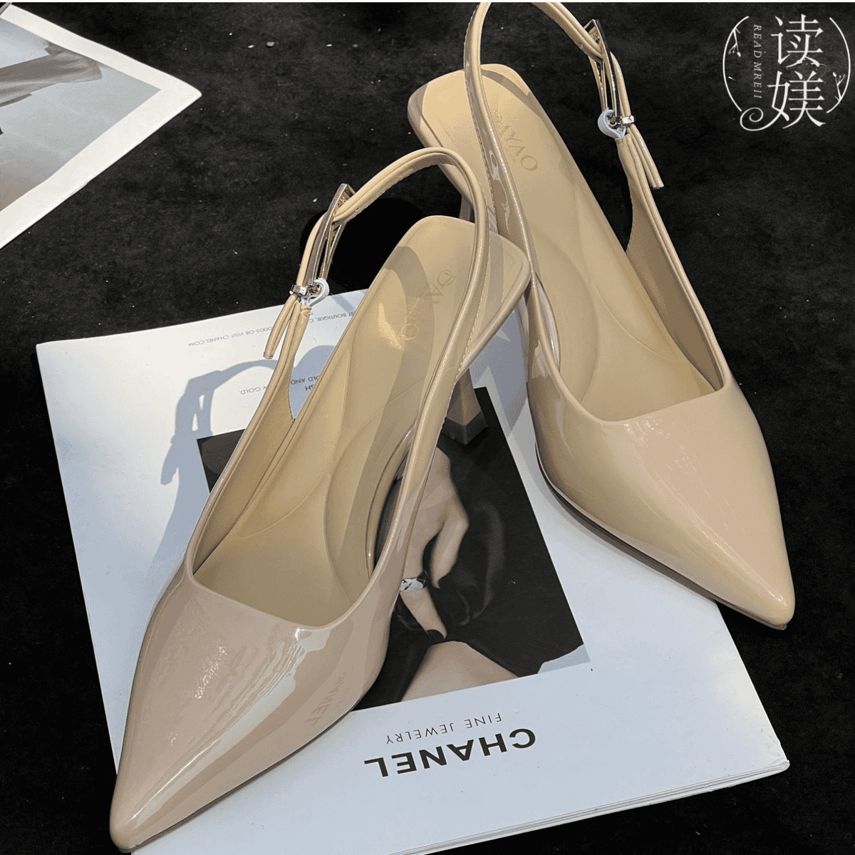 Главная страница > Duyao* [Little Gold Bar] 3cm телесные летние босоножки на высоком каблуке из лакированной кожи с острым носком и открытой спиной для женщин 511
