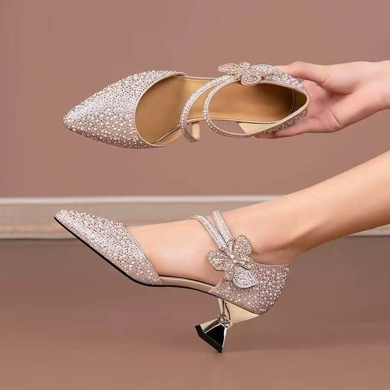 Главная страница > Клетчатые мягкие кожаные золотые банкетные туфли на высоком каблуке, элитные золотые сандалии для женщин на толстом каблуке, новый стиль 2025, женская обувь для юбок