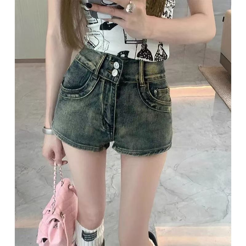 Женские джинсовые шорты, лето 2025, новые утягивающие шорты с высокой талией для горячих девушек, модные нишевые универсальные облегающие ультра-короткие шорты